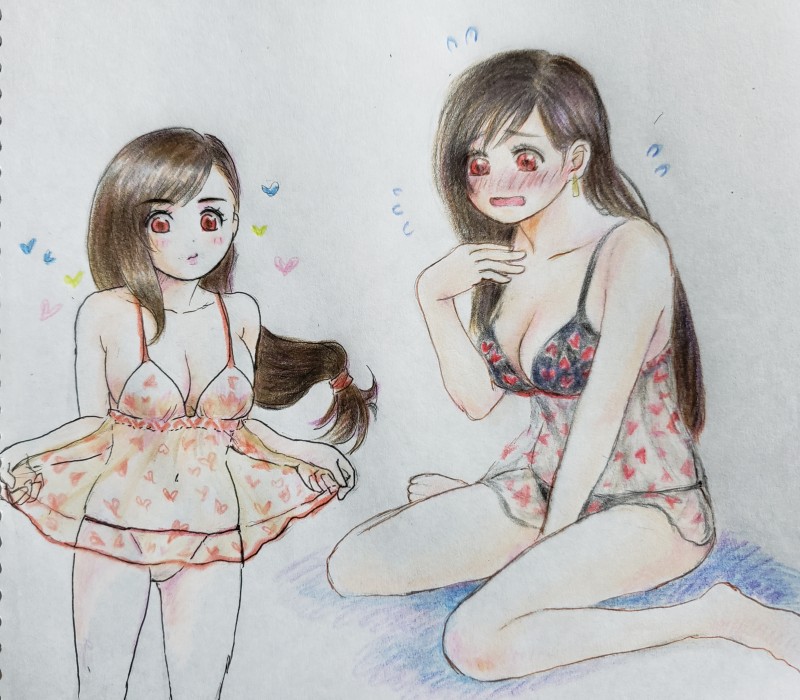 ベビードールからこぼれそうな(笑)胸が、描いててめちゃ楽しかった…‼️ティファのナイスバディにばんざい。
