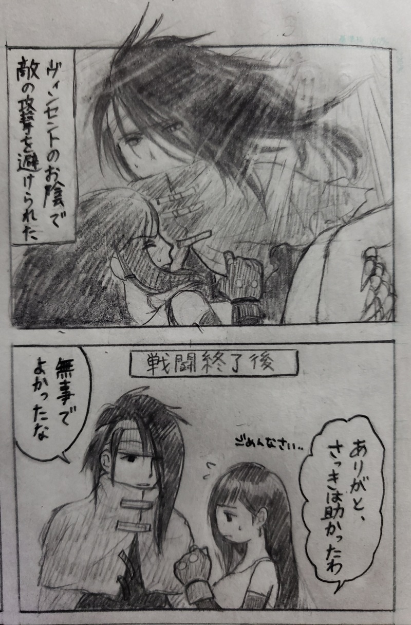 ティファがヴィンセントに敵の攻撃から守ってもらったときどんな反応をするか?といくつかパターンを考えたものでした。