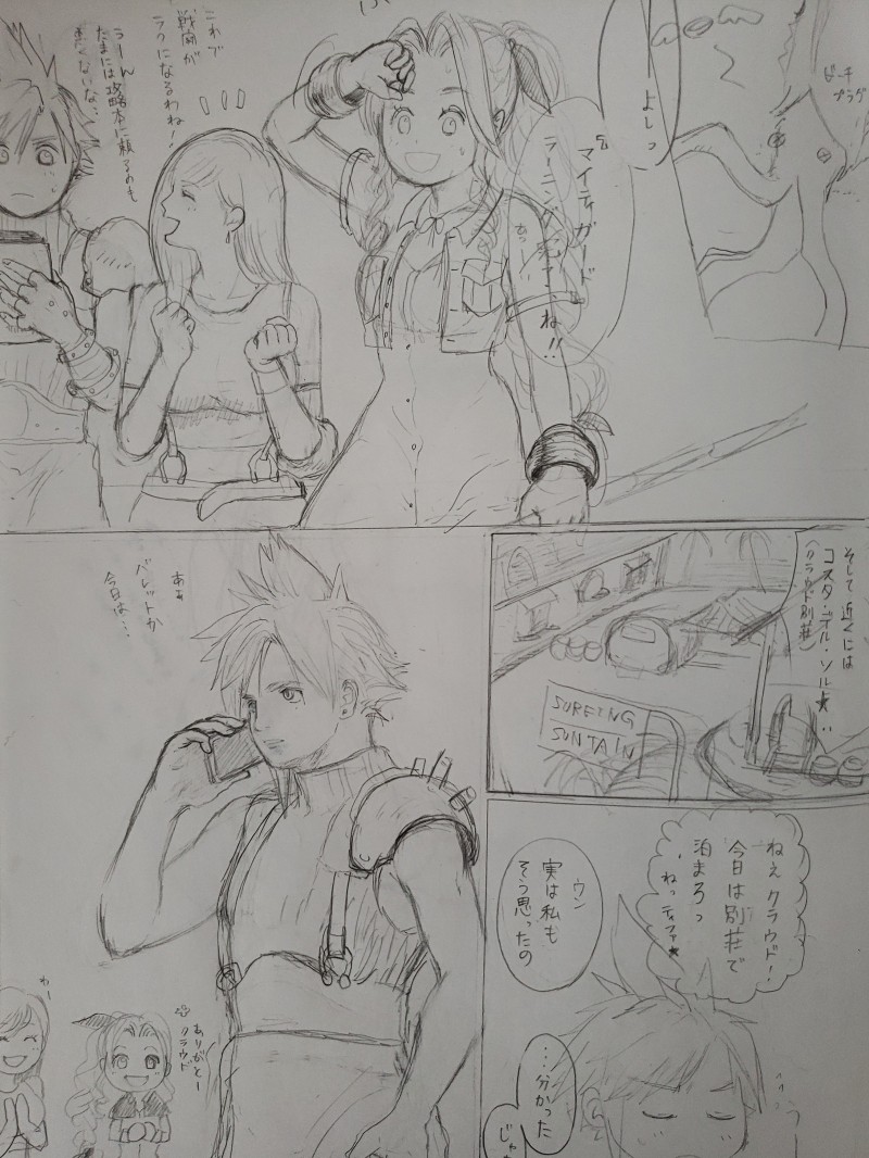 下描き、コマ割などしながらざくざく描いてるところです。比較的マトモに描けてるところだけを、予告編の代わりに。