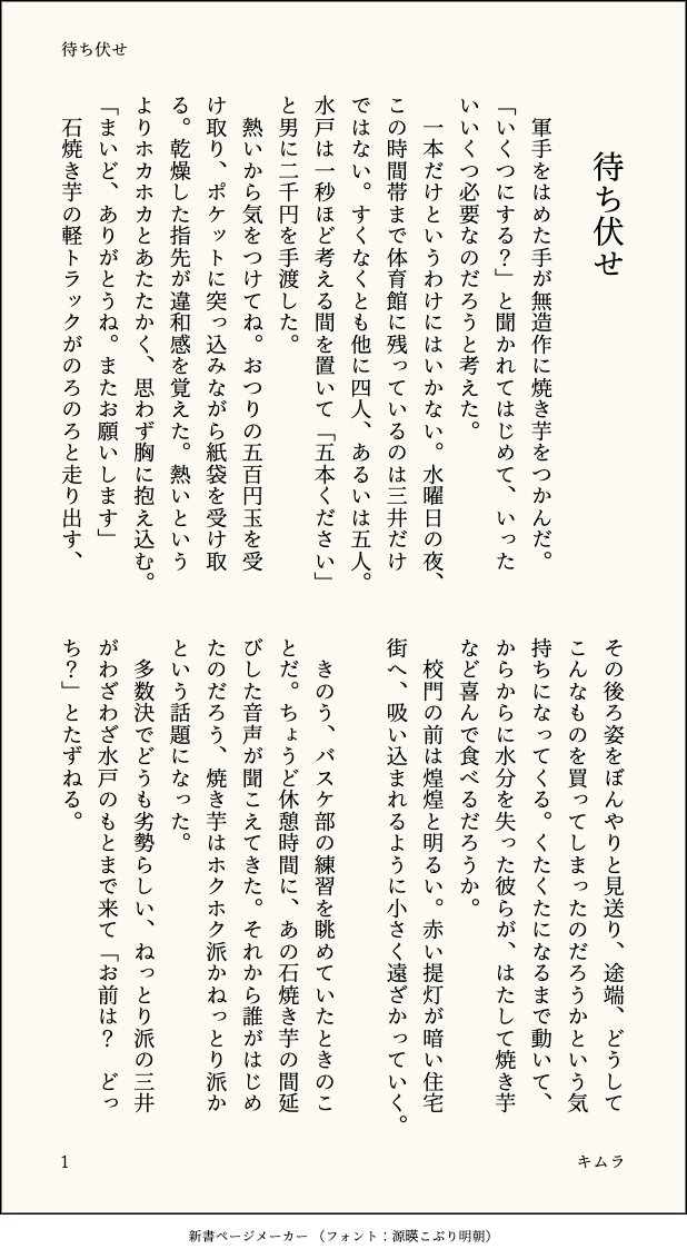 キムラ☆quiet followTRAINING洋→三+ちょっと彩も出ます。三に焼き芋を買ってあげたい洋の話。 #洋三 theOcean show all(+4 images) Tap to full screen (size:618x1132).Repost is prohibited Let's send reactions! freqpopularsnackothersPayment processing Replies from the creator Follow creator you care about!☆quiet follow キムラMOURNING洋が拝借した自転車をふたりで返しにいく洋三。プロット引き直したら入れるとこなくなったので供養。 4 キムラMOURNING100万回生きたねこと自分の恋を重ねる洋が乙女すぎたのでボツになった洋三 3 キムラTRAINING洋→三+ちょっと彩も出ます。三に焼き芋を買ってあげたい洋の話。 5 キムラTRAINING洋三+楠。洋のお昼を買いに行く三と楠の話。 4 キムラDOODLEhttps://poipiku.com/5667685/9446772.htmlこれ↑のつづき。水戸視点。当社比ややセンシティブです。 2 キムラDOODLEX上げてたやつです。初セで三が緊張してできない話。 5 related works B23udbZlpg93Wv8DONE※洋三 新刊サンプル2023/9/24BURST OUT2023/10/1一蓮托生の秘密!R-18!無理矢理表現あり!・夢見勝ちな三さん・やらかし洋・洋が三に縋る描写があります・ハピエン 23 KoKokokofuDONE「似たものシリウス」ワンドロ企画 12/10『冬の星座』分夜の帰り道。「暗がりの」と同軸の洋三てすが、単体でも読めます。 2 Jellyfish bonesPASTソフトなCPイラスト 洋三多め 13 和奏絵DONE花火見るまだ付き合ってない洋三。不法侵入があるけど、広い心で読んでください。そして、マネしないでください。令和では決して許されません。 4683 accccc0MENU以前のサンプルに1ページだけえっちページ足したバージョン導入なのでそんなにエロくない。修正はWeb用に強めになってますが、本では黒ノリです。18↑? 6 ZObk874MOURNING洋三♀ ※女体化注意シブに上げた夏夜のMagicの、最後のセッシーンのロングバージョン。えっちなとこだけ。唐突に終わります。-------以下が書き加えたところで、そこからは三♀視点になってます。ポル○オを書きたかった。18↑?(yes or no) 5219 砂地のログPAST洋三ワンライのお題「目眩」で書いた話です。高校生の洋三。はじめての外デートの日に体調を崩す洋とお世話する三の話。 8 efushi_nyanPROGRESS複雑骨折だし身長差もわからないけど頑張って下書きしたけど足切れちゃうので供養 でがらしひよりDOODLEちゅっちゅしてるとこ見つかってもへらっとしてる洋三🤗 3 recommended works キムラDONE絵チャで は さんが描いてくださった洋三が可愛すぎてお話書かせていただきました☺️は さんのイラストはいちばん最後です!原案・プロデュース:わやおささる さん(@9qcXG0vAhADppLB)イラスト:は さん(@harunishite) 8 キムラINFO以前書いた「我慢くらべ」という小話にわやおささるさん(@9qcXG0vAhADppLB)から、セクシーみついさんを頂戴しました!!どうしてもお話とイラストを並べたかったので再掲です。わやさんのイラストはお話の後なのでスクロールしてください!玉ねぎ切ってる三井さん(水戸フィルター)と、ちがうお前がしたいんだろうの三井さんです💓追記・三井さんを見た水戸くんもいただきました︎💓 6 otkjumpingDOODLE高2~3の洋と大学三、距離感が絶妙でなんかエッチ(?)でいいですね…の絵 2 momosodateDOODLE韓ドラのアイランドパロ三井:大企業の跡取り。権力を狙う叔父の策略によりデマニュースを拡散され左遷。離れ小島の高校に臨時教師として赴任。前世では鬼を封印する力を持ち、半妖となった水戸を救うと約束するも叶わず死亡。水戸:この島に蔓延る鬼を倒すため無理やり鬼の血を入れられ、半妖となる。何百年も生きている。三井が前世を思い出すのを待っている。宮城:悪魔祓いの神父。三井を守るために近づく。 2 20KAIGAKUDOODLE是洋三,18岁禁止观看白天洋平被拉了尾巴,晚上狠狠地惩罚了回去,指拉着三井的尾巴干了个爽密码提示:是否18岁以上?输入(y/n) 2 ブルーベリー。DOODLE綺麗だ 4 ほむらDONE以前Twitterにあげていた花←洋←三のお話(第4話/最終話)です。⚠️19歳の飲酒表現があります⚠️長々と読んでいただきありがとうございました! 4705 つぐはるDONE赤ずきんの猟師と狼でコスプレしたみたいな気分で描きましたオンイベで展示したものです色塗り大変だったのでしばらくは色塗りしないかもな… o_ro_ka_meDOODLEにょたymt詰合せ🎶また更新するかも23.10.28ギャグ1枚