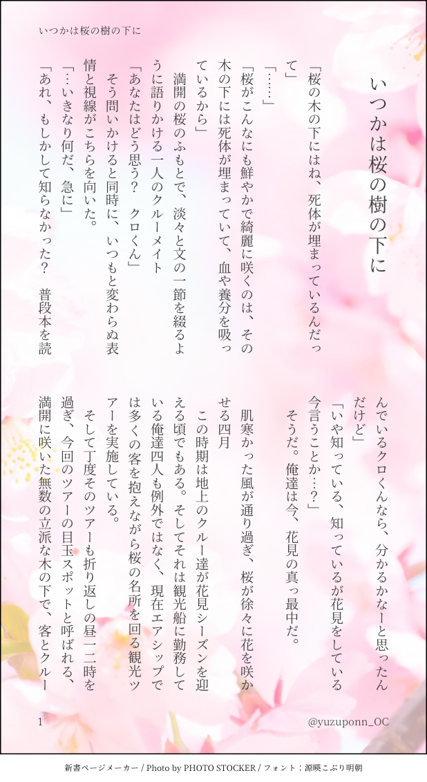 ゆずぽん☆quiet followMOURNING小話🌸 show all(+9 images) Tap to full screen (size:618x1132).Repost is prohibited Let's send reactions! freqpopularsnackothersPayment processing Replies from the creator Follow creator you care about!☆quiet follow ゆずぽんMOURNING小話※モブが出てきます。 13 ゆずぽんMOURNING小話🌸 10 ゆずぽんMOURNING【番外】推し香水感想🧡🌱(注文出来次第随時更新予定)推し香水でうちの子概念香水を注文し、実際に嗅いだ感想や香水に含まれている花などの花言葉を親が書き殴っているだけ。(独り言の感覚なので乱れや親のクソデカが含まれる部分が多々あります。) 5123 ゆずぽんPASTうちの子まとめ4よその子との絡みも含みます。 52 ゆずぽんDOODLE書きたいところだけ書いた自己満のお話となっています。微グロな表記注意です。 2165 ゆずぽんDONE小話ただ2人がババ抜きをしているだけの話 4212 recommended works yerstDOODLE存档 卯生るうDONEC105新刊デジタル版1(描き下ろし集)です!あとがきページの右下にパスワードがあります!お手に取っていただきありがとうございました!! 7 しょうやDONE遅刻だけど誕生日おめでとう。これで描き納めです、また来年! 6 sashamosuDONEリオヌヴィlog 12024年4月から12月まで X (新しいTwitter) に投稿した作品のまとめ⚠︎ パロ、軽度の流血/ゴア、女体化注意 15 白い桃PASTTwitterにあげていた生存Sc博になります 3029 nazunaDONE叶絵と弥子とモブヤコとちょっとネウロ 2 かにょこDONEこういう二人が好き! 4 りんごおばけTRAINING77廻議事録その③スパスタの最終廻の流れがあまりに77廻朝だったので、混乱してつい書いてしまったもの。推敲も文体の調整もなし。アンナ視点。翌朝の幕間。R指定ありませんご自由にどうぞ。今年もお世話になりました。来年もずっと同じです。またよろしくお願いします。2024.12.31 3417 seripi_DOODLEタグのやつ描かせてもらった 9