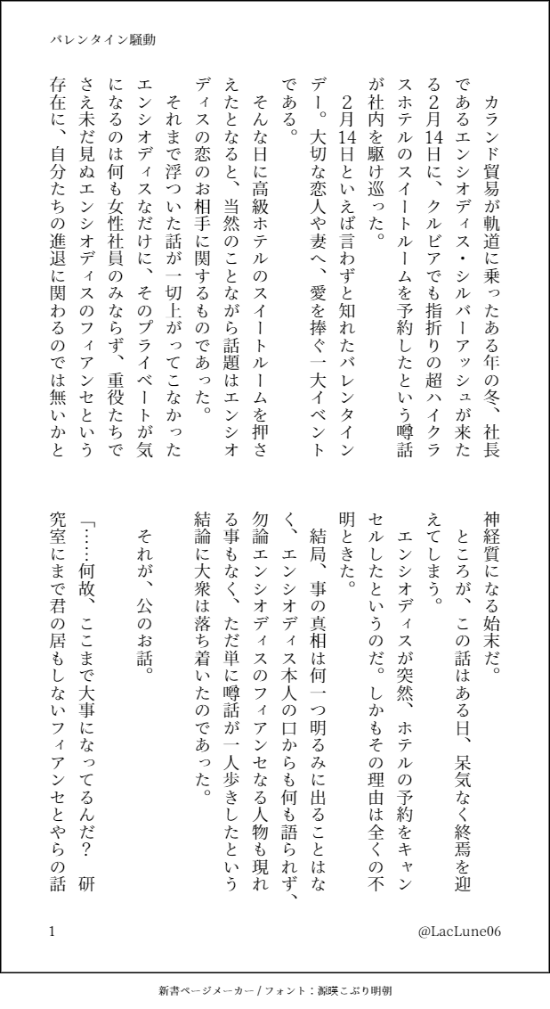 LacLune06☆quiet followDONE「バレンタイン騒動」シルバーアッシュ×ノーシス #銀灵 silverDust show all(+1 images) Tap to full screen (size:618x1132).Repost is prohibited Let's send reactions! freqpopularsnackothersPayment processing Replies from the creator Follow creator you care about!☆quiet follow LacLune06DOODLEラクガキまとめ(銀灵も有り) 11 LacLune06DONE「バレンタイン騒動」シルバーアッシュ×ノーシス 2 LacLune06DOODLEえちえちな銀灵を描きたかった。※雰囲気止まり LacLune06DONE「前でもなく、後ろでもなく。」シルバーアッシュ×ノーシス 6 LacLune06DOODLEらくがきまとめ(銀灵も有) 6 LacLune06DONE「無題」シルバーアッシュ×ノーシス 3 related works LacLune06CAN’T MAKEシルバーアッシュ×ノーシスBI-6のあのシーンって実はこうじゃねぇの??…を具現化したやつ。 LacLune06DONE「無題」シルバーアッシュ×ノーシス 3 Dr_nimoooMOURNING断罪の時は未だ訪れず/銀灵(R18)別名:灵さんの受難。※仄暗め。無理矢理めいた描写もあるためご注意ください。(8/1加筆修正) 8 Dr_nimoooDONE融け、解けて/銀灵(R18)BOOST御礼に書いたss。攻めに強い受けを書きたかったと思いつつ、何だかんだ甘い。pass:18歳以上ですか?(y/n) 5 LacLune06DOODLEラクガキまとめ(銀灵も有り) 11 Dr_nimoooDONE追慕/銀灵寝惚けている灵さんとしんみり銀さん。そんな甘くないです。 4 Dr_nimoooDONE見えない「病」/銀灵以前ついーとしたネタから。多分銀は普通に気付いてるやつ。※かっこいいふたりはいません。※オチに博少々 4 Dr_nimoooDONE憧憬を星に/銀灵イェ……の星空はとても綺麗だろうなと思いを馳せながら書いたやつ。当社比数割増しでほのぼの。 4 LacLune06DOODLEラクガキまとめ(主に銀灵) 9 recommended works oiGunDOODLEアークナイツのシルバーアッシュ落書きとてもいいです#アークナイツ #シルバーアッシュ #银灰 #明日方舟 KUADONE髪型難しすぎて何度か挫折しそうになった2枚目はイラレのパスバージョン 2 パンおじDONEラフ〜ペン入れ〜着彩からの色々。シルバーアッシュさんかわいいね。 5 パンおじDONEみみを動かすgifが作りたくて用意したもの。gifはTwitter(こちらとユーザー名おなじです)に置いてあるのでよかったら。 2 Li-cheDOODLEアークナイツの推しちゃんたち RINGO_03DONE全てが解決するという真銀斬やりたい、アイテム足りない… yuiga009DONE作戦が滅茶苦茶になると「あ”ーーーっ」って叫んでしまうドクターです。困ったときの真銀斬✨シルバーアッシュはいいぞ! #アークナイツ #明日箱舟 3 LacLune06DONE「ギブ・アンド・テイク」シルバーアッシュ×ノーシス 5 LacLune06DONE「安息の場所」シルバーアッシュ×ノーシス 4