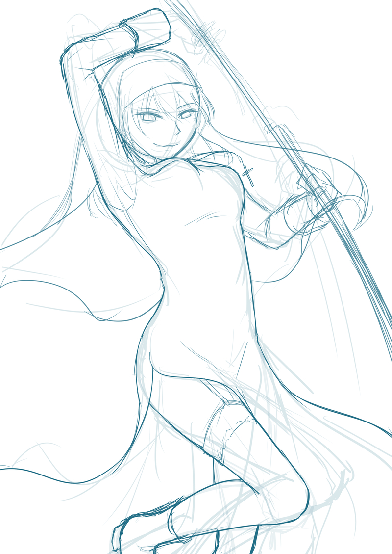 RiJでドゥエ娘を見ていたら「太もも見えてるシスター」が描きたくなった。