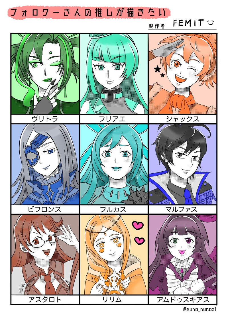 FEMIT12 落書き用で開設。雑な絵、頭の中の整理に使用します。基本メギド72中心 ☆quiet follow Yell with Emoji Tap the Emoji to send POIPOI 110