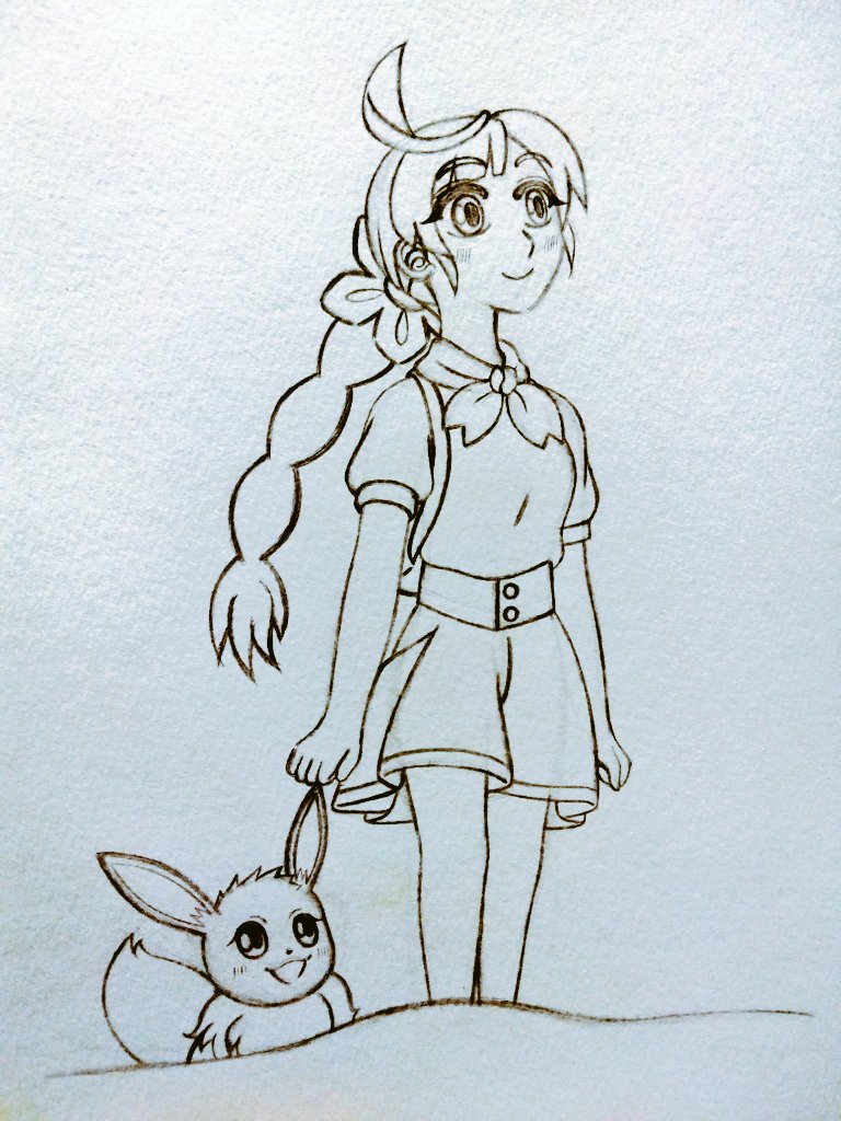 これも今までこちらには載せませんでしたが、以前Twitterに投稿させていただいた新無印アニポケのコハルちゃん&イーブイのイラストでございます☆(^_^)ゞ