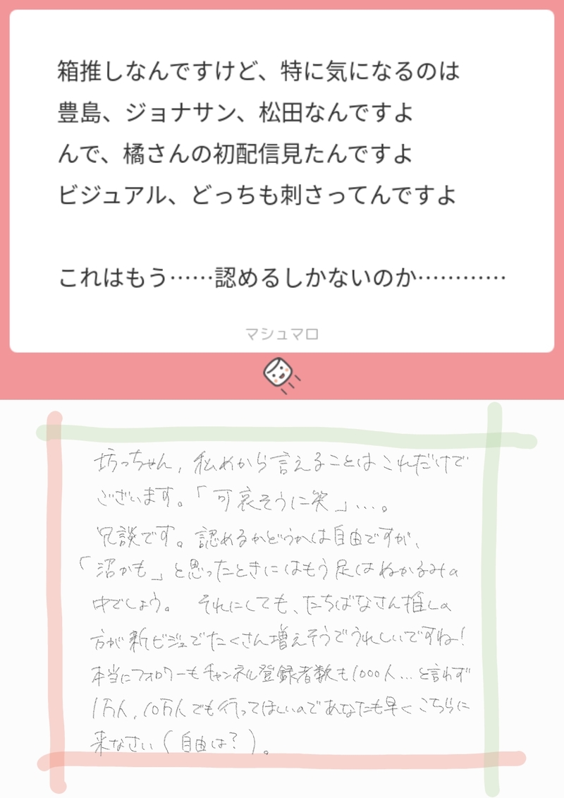 これ以降手書きで返さずにテキストで普通に返してほしいよ、という人はマロにその旨を書いていただけると幸いです👌