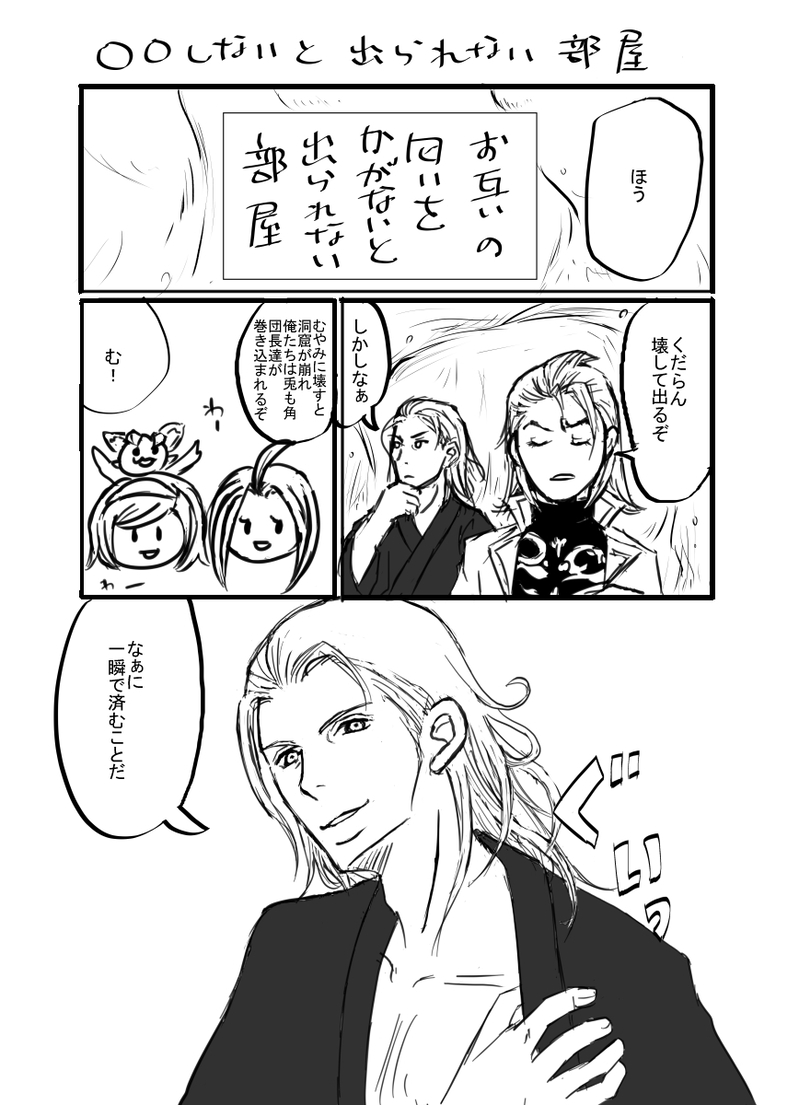 ひろい☆quiet followDONE【WEB再録】パージク『○○をしないと出られない部屋』/2021年7月全空無配本からテンプレっぽい話やってみたいな!と思って描いてみましたユカタヴィラ、魔性の男、においをかぐその他諸々、私の好きなことしかやってません…それにしても自主的に胸元乱れてくれる人っていいですよね(ニコニコ) #パージク #パーシヴァル percival. #ジークフリート siegfried show all(+5 images) Tap to full screen (size:868x1200).Repost is prohibited Let's send reactions! freqpopularsnackothersPayment processing Replies from the creator Follow creator you care about!☆quiet follow ひろいTRAINING3Dの練習で描いた絵…ちょっとワンクッション置かないといけなくなった絵 浴衣でちょっと頑張ろうとしてるパージク ひろいDONE前回(https://poipiku.com/572011/8698504.html)初体験後の漫画描いたので、今回は何度目かの性行為後に🐉の感情が変化するといいなと思いました 2 ひろいDONE初夜のあとの漫画後日談はのちに投稿します※後日談はこちらhttps://poipiku.com/572011/8698504.html ひろいDOODLEいちゃいちゃしたのかきてーーーーーーーーーーーーーーー!!と思ったのでバックハグです肌色注意 ひろいDONE【パージクまんが】しょっぱなからおっぱいでてるのでワンクッションですジークフリートがパーシヴァルを野外すけべに誘おうとするまんがです浴衣着てます! ひろいDONE最後の冬のユカタヴィラ祭り、ユカタヴィラ乱れてるで肌色多め(背後注意ね)。ちょっとえっちな雰囲気です。絵はジー…フリー…しか居らんのですが、私がパージクだと思いながら描いたのでこれはパージクです。 related works mizus_gDONEワンライ「隠し事」(パージク)これ自体にRはつかないけど淫紋の話なのでご注意 2892 ひろいDONE【WEB再録】パージク『○○をしないと出られない部屋』/2021年7月全空無配本からテンプレっぽい話やってみたいな!と思って描いてみましたユカタヴィラ、魔性の男、においをかぐその他諸々、私の好きなことしかやってません…それにしても自主的に胸元乱れてくれる人っていいですよね(ニコニコ) 6 mizus_gDONEワンライお題「二度目のキス」(時間オーバー)「何を舐めている?」「レモンキャンディ……だ、そうだ」 風の無い夜だった。 騎空艇の甲板で島々の夜景を眺めながら、ジークフリートはパーシヴァルの質問に対してやや舌足らずな発音で答えた。その口元は咥えた飴玉を転がすことに忙しいようで、喋っている最中にもしきりにうごめいている。「どうしたんだ、それは」「貰った。団員の土産だそうだ。個包装になったものが食堂に大量に積まれていてな、たくさんあったから俺もひとつ頂いてきたんだ」「……そうか」 パーシヴァルは後ろめたさを抱えながら、ジークフリートの唇をちらちらと横目で盗み見ていた。彼の視線は艇の外、眼下の景色に注がれていて気づく様子は無い。 まるく明るい月に照らされた唇の膨らみは品の良い厚みがあり、肉感を思わせるかたちをしている。ふっくらとしていて実に柔らかそうだ。それから、時折、チロリと覗く舌先が濡れた気配を纏いながら唇の表面を舐め、乾いた膨らみに少しの艶を添えてすぐに引っ込むしぐさをする。それがどうにも見ていて後ろめたい。見え隠れする舌が唇の合間を出たり入ったりするたびにパーシヴァルはなにか好ましくない衝動を持て余し、いったん視 2875 ひろいDONEパージクハロウィン赤ずきんと狼男 ひろいDONE【WEB再録】黒竜騎士団パージク/2021年7月全空無配本からジークフリートさんは何でパーシヴァルと恋愛関係に陥ってくれたかな~?と自分を納得させるために描いた漫画です恋愛関係になるわけにはきっかけが必要で、そのきっかけつくったのはパーシヴァルの告白もあると思うけど、もう一人助言あったら確実に動くんじゃないかでヨゼフ様出してみましたしかし、色々やりたいこと入れたら変な話になりました(反省) 4 mizus_gDONE何処かで淫紋をつけられて帰ってきたジが、その紋がパが近づいてくると反応するということに気づいてパに確認して貰う話。付き合ってないパージク。プレイ目的ではない剃毛シーン含む、あと本番は無いけどR18です 9342 mizus_gDONEワンライお題「一緒に眠る」ふと、控えめなノックの音が響く。 深夜の騎空艇に聞こえる音と言えば艇の駆動音と風の音ばかりであるのが常だ。空耳を疑い、パーシヴァルは耳を澄ました。しばらく返事をしないでいると、少し間を置いてからもう一度、コンコン、と微かなノック音が聞こえてくる。「入れ」 時間が時間だ。こちらが就寝している可能性を考慮しての遠慮であろう。 訪ねてきているのは、おそらく――。「……すまんな、夜更けに」 開いた扉からジークフリートが姿を見せた。 最近、時々こういうことがある。夜も更けてパーシヴァルが就寝しようとする頃、見計らったようにジークフリートが部屋を訪ねてくるのだ。今宵で三度目だ。今日は今までで最も時刻が遅い。「どうした。共に酒を飲む相手でも探しているのか」「いや……