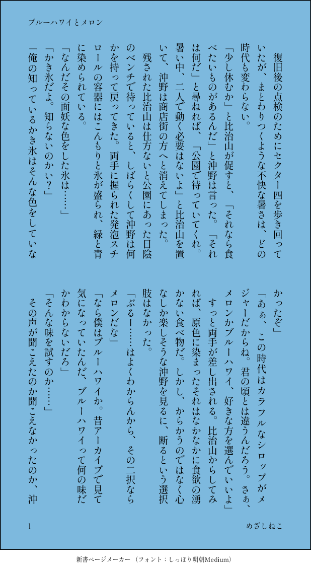 めざしねこ☆quiet followDONEお題をいただいてかき氷を食べる比治沖。かき氷ネタはまだ書きたいものがあるので、また書きます。2023.6.27 #比治沖 beechcraft show all(+1 images) Tap to full screen (size:618x1132).Repost is prohibited Let's send reactions! freqpopularsnackothersPayment processing Replies from the creator Follow creator you care about!☆quiet follow めざしねこDOODLE俺おにが書きたくてぇ……どんなシーンにしようかなと思ったのですが、初めて俺の家に来た時の話にしました。ロクロにびびるおにいさん絶対かわいい…… 1602 めざしねこDOODLE2025.3.13ワンライお題「ホワイトデー」この話の続きです。https://poipiku.com/5725629/8313150.html 2125 めざしねこPROGRESSジェレミーのこと好きなのですが、アレイン殿下がジェレミーを仲間にした理由がわからないのでとりあえずこじつけようとした話です。後半進まないのでとりあず前半だけ上げておきます。2025.3.9 2643 めざしねこDOODLEジェレミー、後ろは開発されてても、胸は未開発だといいなーそれを初めて開発したのがグロスタだったらいいなーという頭の悪いお話です。2025.3.6 5289 めざしねこDOODLE昔BOOSTの御礼に入れていた話です。二冊目の頃なので2023年末~2024年初めの頃。 616 めざしねこDOODLE遅くなりましたがグロスタの誕生日おめでとうをアラミスに祝ってもらいました。でもこの工場ではグロスタ×ジェレミーを生成しているので、ジェレミーは出てきませんがグロジェレです。2025.1.21 2444 related works のまたおるDOODLEエンディング後かなりの年月が経ってる比治沖成人向けツイッターhttps://twitter.com/bathtaoru2 3 き🍄DOODLE大混乱(ひじやまくんとおきのくん) shininghouse00DONE畢竟是比治山開頭就玩到的橋段應該不算捏吧,總之這對真香。有繁中版真是太好了,而且翻譯也很會玩w kinokow12DOODLE▲葛藤期間▲付き合ってない▲中国語內容大概就是沖野要處裡第4區的復原工程整天待在研究室裡,難得見到彼此的兩人有許多內心戲,但因為一些誤解又吵起來的短篇故事因為自己懶得翻日文就丟到沒人看的小地方了,對不起... 5 soyosoyosyrDOODLE12番機兵の日、おめでとう🎊2枚目以降は書き散らし 5 林 田DOODLE比治山くんはこういうのが好きだろう? めざしねこDOODLE謎の現パロ時空。比治山くんに会えない沖野くんが大人のおもちゃを買ったよ!大人のおもちゃが出て来るので、ワンクッション置いてますが、えっちなところはカロリー使うのでその手前まで。2023.11.19 616 kinokow12DOODLE比治沖每回のセックス 6 pokanicaDOODLEちょっとすけべな比治沖