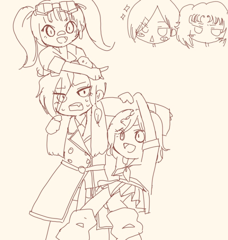 パパなシロせんせーと娘ふたり。あとうしろでムッとするカイくんとキラキラするユースフくん。