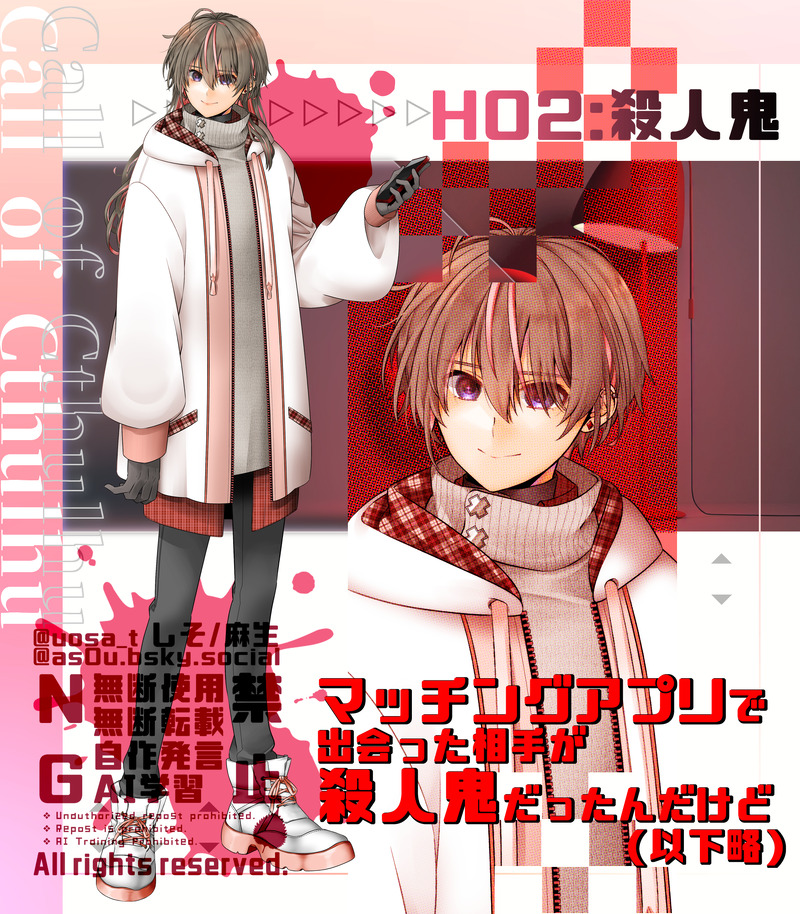 しそだったり麻生だったり☆quiet followDONECoCマッチングアプリで出会った相手が殺人鬼だったんだけど(以下略)HO2・殺人鬼 叢雲 雫 ネカマ♪ #🍃ディスプレイ Tap to full screen (size:1750x2000).Repost is prohibited Let's send reactions! freqpopularsnackothersPayment processing Replies from the creator Follow creator you care about!☆quiet follow しそだったり麻生だったりINFO【クトゥルフ神話TRPG】媚薬で発情しているのをKPCにバレないように隠し通せ!白い部屋デラックス♡KP:みお KPC:藤堂 乃々花 PL:しそ PC:足柄 伊織 しそだったり麻生だったりINFOクトゥルフ神話TRPG『辜月のN』KP:にれこさんPL:さんたさん ❖PC1 禍:藤善 結晴 :しそ ❖PC2 箱:大淀 伊凪 しそだったり麻生だったりINFO【CoC】我が理想の青夏よ!KP:しそ KPC:秋霜 珊瑚PL:みお PC:夏羽 檬夕 しそだったり麻生だったりDONE催眠ダーリンlv1につかった・メイン画像・立ち絵(2種)・差分(一部)融けて交わるビオトープのネタバレがあるので未通過は✖ 4 しそだったり麻生だったりINFO【CoC】『東京ヴァンプズ・スーサイド』KP:ゆりしかさんPLしそ HO吸血鬼:ダリア・レパルスジョニーさん HO死願者:二ノ宮 月子 しそだったり麻生だったりDOODLENPCと自秋が話し(?)をしてます。
