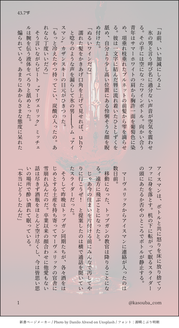 kasouba_com☆quiet followDONE【TG:マヴとアイス】画像SS2人がしゃべってるだけ show all(+4 images) Tap to full screen (size:618x1132).Repost is prohibited kasouba_comPAST【TG:アイマヴェ】人外アンソロ寄稿分です。夢みたいなアンソロでしたね、ありがとうございます。pass:映画公開年(数字4つ) 9 kasouba_comDOODLE【TGM:マヴェルスマヴェ前提】ルスのマヴいじり。口ーション力゛ーゼあそび。pass:18歳以上ですか?(y/n)+マヴ機体番号 5 kasouba_comDOODLE【TGM:フェニとマヴ】 4 kasouba_comDONE【コラテ+TG:ヴィンセントとマーヴェリック】画像SS若マーヴがヴィンセントを拾った話 4 kasouba_comDOODLE【TGM・TG】cpぽいものや微センシティブなもの・ネタ絵等々まとめ 9 kasouba_comDOODLE【映画記録絵】観たもの全部描きたいけど実際は全然描けてない 5