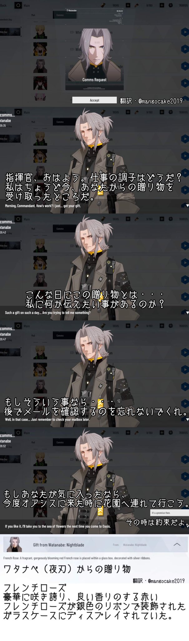 mangocake2019☆quiet followDONEワタナベ夜刃&景星パニグレ英語版イベント和訳ホワイトデー通信2022と薔薇のプレゼント(本国版520の日と同じ文章、日本版未掲載) show all(+1 images) Tap to full screen (size:606x2048).Repost is prohibited Let's send reactions! freqpopularsnackothersPayment processing Replies from the creator Follow creator you care about!☆quiet follow mangocake2019DONEパニグレ英語版・ビアンカ深痕告知番組でのケルベロス(ヴィラ・21号・ノクティス・マーレイ)の水着塗装に関するエピソード(日本版未掲載) mangocake2019DONE 2 mangocake2019DONEパニグレ英語版イベント「魔女のカフェ」指揮官(プレイヤー)はビアンカが経営する「魔女のカフェ」の店員として、訪れる構造体たちを接客します。構造体たちは明確な注文ではなく、抽象的に「こんなものが飲みたい」と言ってくるので、それに応えて9種類のドリンクを作成・提供します。リーパート・全3部 日本語訳大成功❤️・成功⭐️・失敗の3パターン順に掲載しています 4 mangocake2019DONEリクエスト企画ロゼッタパニグレ英語版イベント和訳ホワイトデー通信2022と薔薇のプレゼント(本国版520の日と同じ文章、日本版未掲載) mangocake2019DONEリクエスト企画ビアンカ真理パニグレ英語版イベント和訳ホワイトデー通信2022と薔薇のプレゼント(本国版520の日と同じ文章、日本版未掲載) mangocake2019DONEリクエスト企画リーフ闇蝕パニグレ英語版イベント和訳ホワイトデー通信2022と薔薇のプレゼント(本国版520の日と同じ文章、日本版未掲載) recommended works qEteAxqZKt778DONEきゅ! 壱煇なぎDOODLEセトス、ありがとう 2 ヤニコ。DOODLE sakumochi_34DOODLE絵チャ産物 ヤニコ。DOODLE ハニワDOODLEお菓子の家に住む小毬ちゃんの家に行く鈴ちゃん。もう少し直すかも…。 TRPG_36DOODLEリリリバ げんみ❌ にびさんへ 糸井🌷DONE書き初め 生井さん🚫DOODLE※生井から移行ももたろ衣装の蒲深(?)