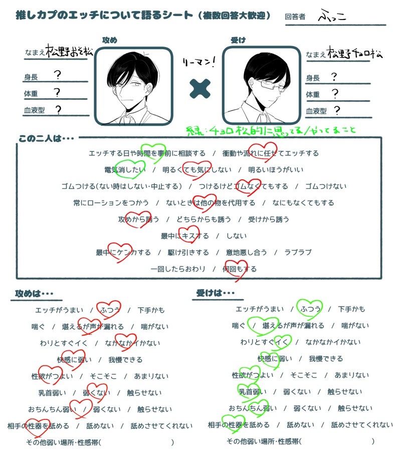hukko_matsu☆quiet followDONE久しぶりに描いた…! Tap to full screen (size:1802x2110).Repost is prohibited Let's send reactions! freqpopularsnackothersPayment processing Replies from the creator Follow creator you care about!☆quiet follow hukko_matsuDOODLEにいさん、もうリハビリどころではないレベルだけど… hukko_matsuDONE干支おそチョロ雑だ〜ことよろー 2 hukko_matsuDONEマフィアおそチョロ、媚薬を持った話 hukko_matsuDONEつけ毛ならいいなとかいう妄想白雪姫のおそチョロ hukko_matsuDONE久しぶりにおそチョロ hukko_matsuDONE久しぶりに描いた…!