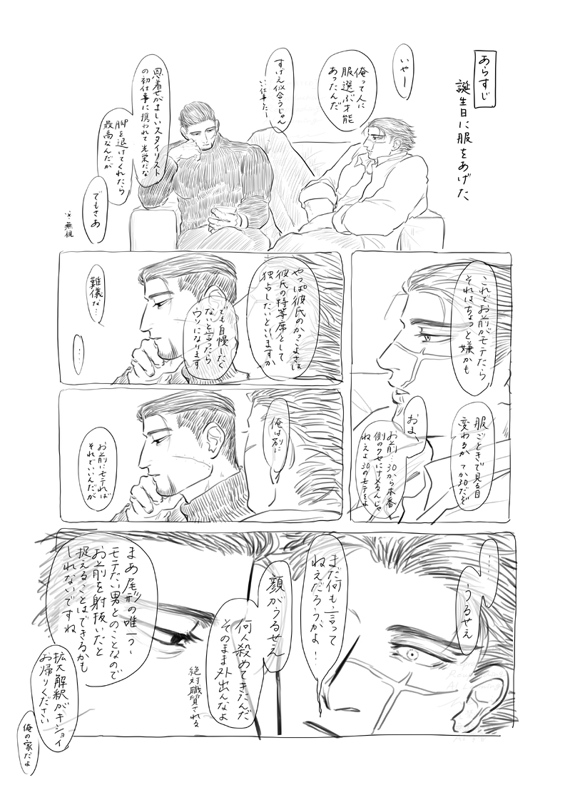 少し考えてから、杉元は起き上がった。グズグズしている暇はない。早くしないと尾形が寝てしまう。自分の部屋を出て、隣の部屋のドアの前で止まる。隙間から、灯りは漏れていない。ほんの少しだけ逡巡してから、おずおずとドアを開けた。