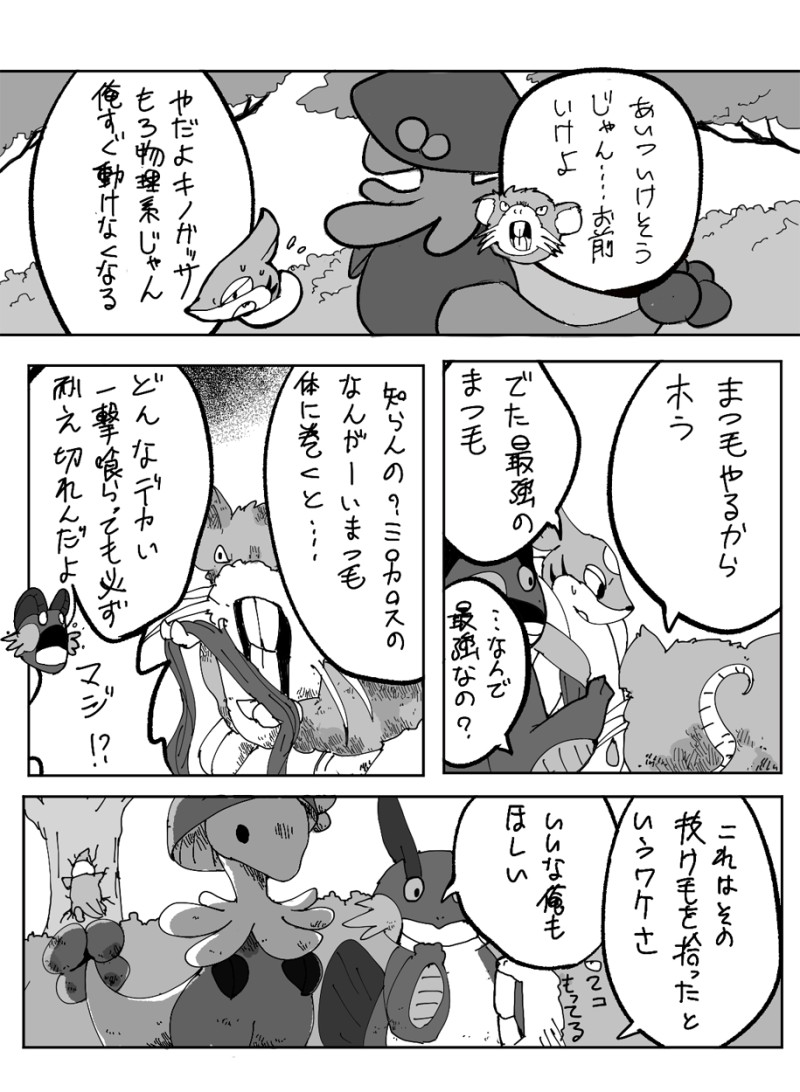 ポケモンの漫画 @dishosipoke ピカチュウとキレイハナが、あちこちを目的なく放浪する話を延々と描いてます。(荒んだ描写が多くて正直キツいので注意。)世界観はブラックホワイトで止まってます。でんきタイプにしびれごな通ったりどくタイプ不遇だったり今と戦闘ルールがだいぶ違うかも、ごめんね。 ☆quiet follow Yell with Emoji POIPOI 47