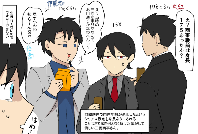 【商社】決して小さくはないのに数少ないツッコミどころなので存分にいじられる後輩してる商事さん