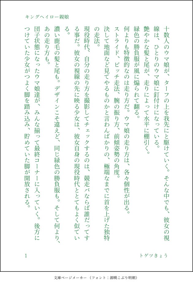 11kyo_25☆quiet followTRAININGアプリキングヘイローストーリーのダービーのあたりを、キングヘイローお母様視点で。お母様から見たってキングは全く才能のない娘ではないだろうと思うんですが、なまじ才能があったからこそ心配だったのかもな、という妄想です。お母様にダンシングブレーヴ要素を盛り込んでいます。 #キングヘイロー kingHero show all(+2 images) Tap to full screen (size:630x928).Repost is prohibited Let's send reactions! freqpopularsnackothersPayment processing Replies from the creator Follow creator you care about!☆quiet follow 11kyo_25REHABILItwst夢。イデ監♀SS。オンボロ寮に来て下さいと招待されたイデアがテンパるだけの話。800字チャレンジ用。ラブコメ。 2 11kyo_25REHABILI昔書いた狗神マンドリカルド×女子高生ぐだ♀の設定で。ぐだ♀が中学生時代の話。短い。ぐだ♀視点だとこう見えてるみたいな話。リハビリに書いた800字ショート。 2 11kyo_25REHABILI「護衛の仕事だけはしくじった事が無い」FGO以蔵さん過去話。Wikiで得た知識でしか書いてないので雑なのは許して。勝先生の護衛をやってる以蔵さんの戦闘描写書きたいだけで書きました。800字チャレンジ用。色々雑。 3 11kyo_25REHABILI以前書いたアイドルパロマンぐだ♀の続きというか、同じ世界線の話。800字チャレンジ用。フォロワーさんがお仕事大変そうだったから応援用に書きました。仕事が忙しくて眠れないマンドリカルドとそれに気づくぐだ子のお話。 3 11kyo_25REHABILIジェイドがほとんど出てこないジェイ監。フロイドと監督生が喋っているだけ。若干バイオレンス表現あり。やべー人魚が彼なりに頑張っているSS。800字チャレンジ。リハビリ作品。 2 11kyo_25REHABILIFGOのSS。「シェヘラザードのただひとりの戦友」カルデアのシェヘラザードとナーサリーライムの初めましてと再会の話。 3 related works mqube015DONEお誕生日なキングヘイローとハルウララ、ハルウララだと四つ葉のクローバー探すだけでも傷だらけだろうなと 2 mqube015DONEページを詰めて大幅カットしたキングちゃん mqube015DONEキングちゃんのお誕生日だったよー!(去年のお誕生日の続き くさかDOODLE奥さん、キングの勝負服のハチマキ、ウララが結んでるらしいですよ(ソースはホーム台詞参照) mqube015DOODLEキングちゃんに運ばれるウララちゃん mqube015DOODLE夢オチうっららー くさかDOODLEhttps://twitter.com/ksk_game_/status/1396372076454285313?s=21 やむやむ。DOODLE推しだけ本気で描くというやつ挫折してるやつ。 2 mqube015DOODLEキングちゃんと頑張るぅららー recommended works ひらびGIVE UPタグ絵の没〜#FGO 2 うめこぶDONEアマデウス#FGO なみだめの涙DONEフォロワーさんのお誕生日お祝いに捧げたアナちゃんねこみみフードが最高に可愛いと思うんです… ハネ。DOODLEマーリン練習( 。•̀_•́。) komaPAST厚塗りを練習していた頃の習作イシュタルが入ってる凛ちゃんのつもり ② 子DOODLE みゃーたの落書き帳TRAININGランダムマイルームで1番に2番の服を着せるタグのやつ アンデルセン ✁(シゾ)DONE推しに推しの服を着せるhttps://twitter.com/ciseaux_o/status/1177352853590904832?s=20 にゃんちゃんDONE最終再臨記念、水着メルト!