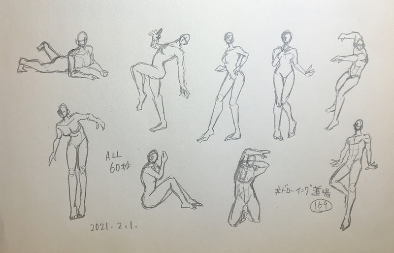 2021年2月分のドローイング練習。1ポーズ1分。