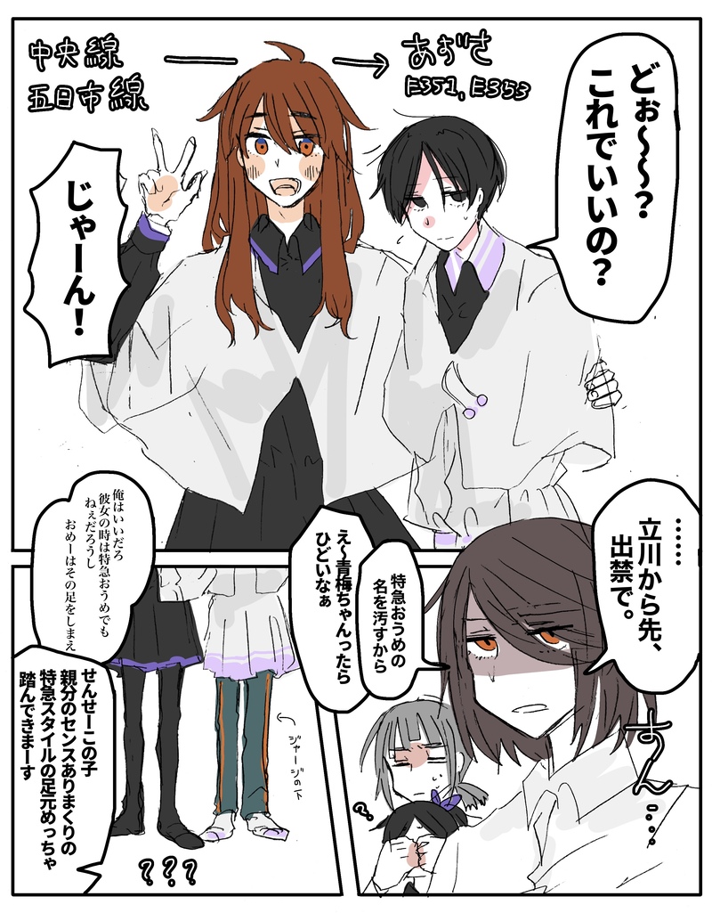 ちなみに3リプ目の五日市も頂いたのでちょうどあずさちゃん2人いるし(晴れ軌ではE351とE353)五日市くんにも351少女になってもらうなど。
