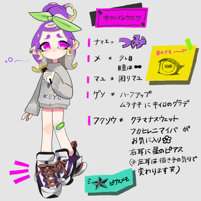 mck☆quiet followMEMOうちの子キャラシート #キャラシート characterSheet show all(+1 images) Tap to full screen (size:1200x1200).Repost is prohibited Let's send reactions! freqpopularsnackothersPayment processing Replies from the creator Follow creator you care about!☆quiet follow mckDOODLE自宅タコのキャラシート 3 mckMEMOうちの子キャラシート 2 related works 00luza00PASTキャラシート 2 minorMEMOテンプレお借りしました、うちの子設計図2です mckMEMOうちの子キャラシート 2 1104DONE🌸うちのこキャラシート🌸(BL要素あり)かわいくて優しいこたちです。どうぞよろしくお願いします🍀うちのこ知ってもらうためのシート出来ました🌸 w興味持ってもらえたり、好きって方がいたら嬉しい♪٩( *ˊᗜˋ* )۶(メインはたすたく) 2 湯棚(ゆたの)PROGRESS金曜に載せる絵の下描き立ち絵、キャラデザの参考になればなと。シートにすればわかりやすいしね 湯棚(ゆたの)PROGRESS線画ができたのでマントと大剣にしちゃってどうしようかと思ったけど、備考欄も使えていい方向に転びました 蒼川よるDOODLE我が道をゆく奴 Kazurin12201005DONE島民代表(主人公)のキャラシート的なもの。身長、体、顔かたちといったもの。