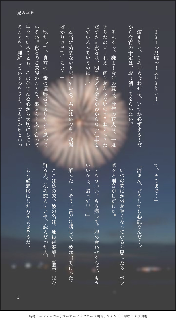 nekosuzu☆quiet followDONE以前🐶ドロに投│稿したものに大幅加筆。支部にも上げてます。またまた背│景画│像入れてみたくなり。全11頁 #kmtの夢 dreamOfKmt #kmtプラス kmtPlus show all(+10 images) Tap to full screen (size:618x1132).Repost is prohibited Let's send reactions! freqpopularsnackothersPayment processing Replies from the creator Follow creator you care about!☆quiet follow nekosuzuDONE以前🐶ドロに投│稿したものに大幅加筆。支部にも上げてます。またまた背│景画│像入れてみたくなり。全11頁 11 nekosuzuDONE初の🔥さん短編。『路傍のすみれ』題名にちなんで、紫色の紙で縦書きにしてみたく。 14 related works MacoDOODLE #kmtプラス泥酔🎐育ての親の里長譲りで関西弁になる、はがねづかほたる(37歳既婚)さらにニコニコ酔いになる、はがねづかほたる(37歳既婚)うねうねといい、ちゃんと楽しい時は機嫌はいい泥酔しても素直に可愛いとか好きだとかは言えない(彼の中にそんな言葉はない)けど、嫁ちゃんはお団子なんだ…ワンドロチャレンジ、1分オーバー 3 mugikomugi06DONE⚡/「彼女を俺が俺から守る話」の続きです。(俺から守れませんでした)好きの気持ちを伝え合うために、初めて体を重ねる話。優しくて騒がしい⚡君が好きです。※キメ学軸※前戯長め。※続き物ですが、この話単体でも読めると思います。※R18。18歳未満は閲覧禁止。#kmtプラス#夜のkmtプラス 6 MacoDONE #kmtプラス⚠️夢主顔あり⚠️TS百合表現あり⚠️なんでも許せる方向け🔥🚺🎐の△で女体化まんが(8ページ➕ボツページ)2人とも凄く男らしいと思う 9 ho_ha_nDONE #kmtプラス🔥 (転生後キ!メ!学軸)⚠️夢主がいます⚠️付き合ってます「キ¡スしてください」 MacoDONE #kmtプラス⚠️夢主顔あり🔥さんご婚礼おめでとうございます花嫁簪はもちろん炎と紅葉と鶴(夢主の名前に由来)大正時代の結婚式色々調べたら楽しいこと楽しいこと和洋折衷と悩むも、やはり🔥さんには伝統の🔥家の黒紋付、金屏風と古風にお願いしたい……🙏こういう夢絵描くほど🔥さん原作で故人なのスゴクツライ…だから夢で生かす…夢主の反物は今後も使いそうなので作った 2 MacoDONE #kmtプラス鋼鐵i塚蛍と家族と、スイカの種飛ばし⚠️鋼鐵i塚の子供ネタ⚠️夢主顔あり 2 ユメユメDOODLE有一郎くんとちゅーしてるだけ 2 MacoDONE #kmtプラスとっても眠いけれど一人じゃ寝ない🎐(37歳既婚)抱き枕がないと寝れない“うねうね”をつい忘れてしまうけど、うきうきとか楽しい気持ちがまろびでちゃうのではないかと思う mari_kmtpDONE #kmtプラス#夜のkmtプラスShuさんからいただきました!kmt📿さんランジェリープレイ。 1812 recommended works 餅太郎DONEkmtプラス歪/アリパロ🍑⚡ 3 白ʕ๑•ɷ•๑ʔDONE病み(闇が正解なのかな?)前兆の🔥さん🌸亡くなったその後ぐらい顔なし🌸居ます苦手な方は(〃 ̄ω ̄)σ もものあめDONE⚠️🌸(素体 表情表現あり)いますのでお気をつけください!⚠️🔥さまに頭を撫でてもらう!⚠️枠から文字までオールアナログです 4 やまぞえDONE🌸ちゃんと煉🔥さん(杏🔥郎さん)の込み入った話2人の関係はまだまだ青いですがいつもより少し上のお嬢様向けの話?ですキャプションをしっかり確認の上ご覧ください〜#kmtプラス 5 -香奈-MOURNING初 ラ○ン系夢小説(にもなってないやつ)ただやってみたかったまたやるかもしれない dadan_yumDONE🔥さんと、年上夢主の恋。耐え忍ばなくても実るはず。続きは媚薬使いたいなー 3280 北野さんDOODLE♨️の日って事っ再放送玄実です!!!!!! 5 たねいもPROGRESS構図案 2号店さん。DOODLEハイストちゃんしゃっくり回の脅かす時、2人で入ってたよね⁉︎2枚目は多分警部が先にやらかしてる。 2