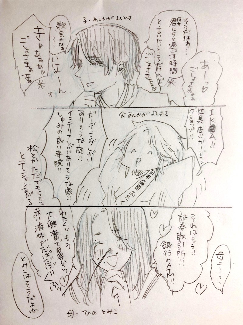つくばい☆quiet followDOODLE【歴史創作】「精神的にアガる場所はどこですか?」と聞かれた足利さん親子義政「富子は嫁いで来た時からそうだから!新婚旅行は証券取引所とかいいだしたからね!」 #歴史創作 historicalCreation #室町時代 Tap to full screen (size:2842x3805).Repost is prohibited Let's send reactions! freqpopularsnackothersPayment processing Replies from the creator Follow creator you care about!☆quiet follow つくばいREHABILIエカチェリーナ2世とポチョムキンの往復書簡本で面白かったの、なんかすごい人が「ちわーっす!ファルケンシュタインでーす」ってお忍びに来てポチョムキンがロシアのとある街を案内しなきゃいけなくなった話※グリーシャ=ポチョムキンの愛称らしい つくばいREHABILI伊達政宗が奇行する→細川忠興が奇行ネタを立花宗茂あたりから仕入れる→忠興が息子の細川忠利に仕入れたネタを手紙で披露するってパターンが多いので伊達政宗の奇行を知り尽くしている細川忠利の予感。政宗の息子の伊達忠宗と忠利は仲良しらしい。 つくばいREHABILIエカチェリーナ2世とポチョムキンの往復書簡本より!真面目なポチョムキンが「(多情な)女帝の愛人になりたくない」と考えていたらしく、お召しを断っていたのにエカチェリーナが下手な恋愛小説より凄まじい恋愛遍歴を書き連ねた反省文を書き送っているのが抱腹絶倒だった つくばいDOODLE【歴史創作】「精神的にアガる場所はどこですか?」と聞かれた足利さん親子義政「富子は嫁いで来た時からそうだから!新婚旅行は証券取引所とかいいだしたからね!」 つくばいDOODLE【歴史創作】嫁から借金してそうな足利義政 https://twitter.com/harukooo6v6/status/1269201359221350400?s=21 の続き! つくばいDOODLE【歴史創作】仲の悪い足利義政と足利義尚室町時代はどれだけ退廃的でも許される予感 related works つくばいDOODLE細川頼之(暫定) つくばいDOODLE外野になんか言われた上杉憲実 主君(足利持氏)に対する感情がビッグサイズだといい つくばいDOODLE【歴史創作】「精神的にアガる場所はどこですか?」と聞かれた足利さん親子義政「富子は嫁いで来た時からそうだから!新婚旅行は証券取引所とかいいだしたからね!」 つくばいDOODLE【歴史創作】嫁から借金してそうな足利義政 https://twitter.com/harukooo6v6/status/1269201359221350400?s=21 の続き! つくばいDOODLE【歴史創作】仲の悪い足利義政と足利義尚室町時代はどれだけ退廃的でも許される予感 recommended works くおんぬDONE友達にクリスタを借りて描きました。オオカミじょんたそ。 #歴史創作 すーぱい子PAST【歴史創作】ながくらしんぱち #歴史創作 momoitiDONE描き終わった!!影の部分の表現方法が本当に難しかったです此れで慣れていくと良いのですが きたのMOURNINGタグ参加したやつ 白背景にするか色付き背景にするか最後まで悩みました つくばいDOODLEキルヒアイスくんなら 閣下の安眠グッズを運んでくれそう つくばいDOODLE【歴史創作】仲の悪い足利義政と足利義尚室町時代はどれだけ退廃的でも許される予感 ゆきふね壽左衛門DOODLE宇宙しゅ〜ぶん先生 natsuno_tamakiDOODLEユリアン、ちょっと幼すぎた…今後の成長と活躍、楽しみなんだよな~!! のや@ポイピクPROGRESS好きなシーン模写線画できた