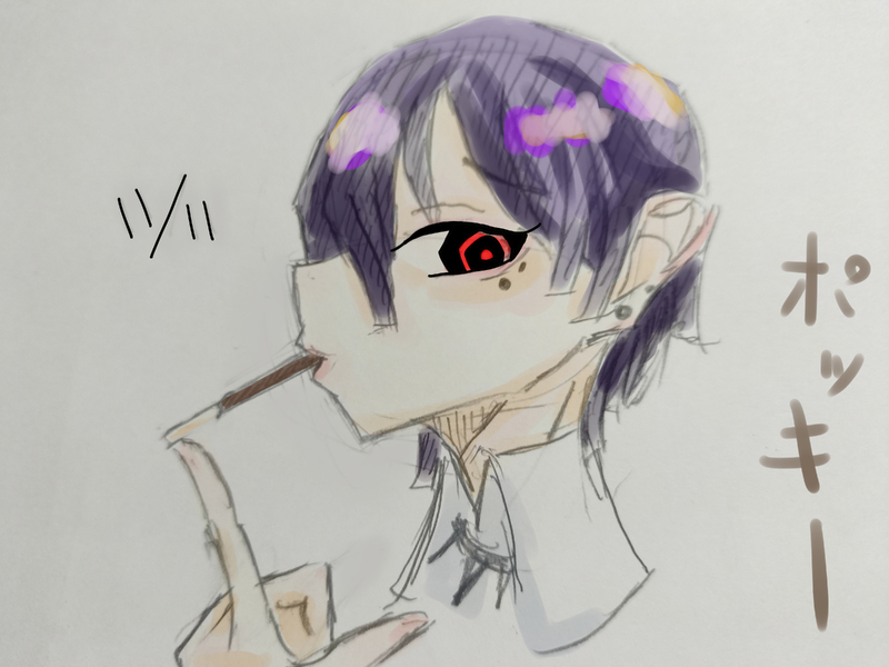 今日がポッキーの日だと今気がついたので秒で描いた彩刃倫道くん...