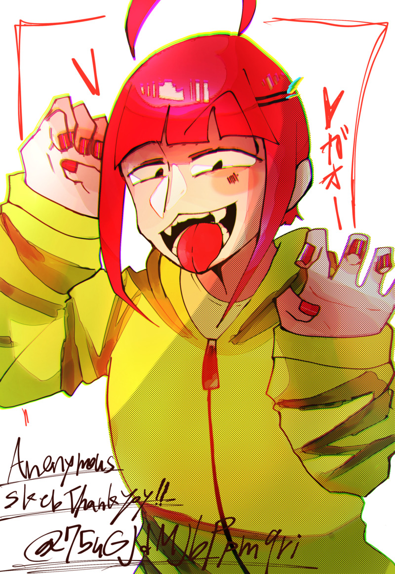 出来るだけ内容に沿った物をお作りいたしました🙇喜んでいただけると嬉しく思います✨赤い髪にしてりんごを思わせる風にしました。顔が可愛いと言う感じではない(いい意味で)ので少しでも可愛いを足そうとりんご🍎のカラーバリエーションにしました!がおーがなんとも可愛らしい表現でしたのでそちらも使わせて頂きました。私は手で表情を作りたい人間なのでだぼっとかんがもしかしたら薄れてしまっているかもしれません。