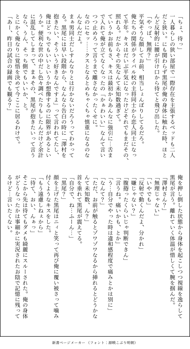 ささらなみ☆quiet followMOURNING202308X初出 黒大 初めての始め方 Tap to full screen (size:618x1132).Repost is prohibited Let's send reactions! freqpopularsnackothersPayment processing Replies from the creator Follow creator you care about!☆quiet follow ささらなみMOURNING星海光来君誕生日おめでとう!卒業後2年くらいの光来君と幸郎です。⭐️🕛風味 4 ささらなみMOURNING黒大 アラサーくらい 遠距離恋愛中 7 ささらなみMOURNING2022/6ツイッター初出 にしあず 旭さん♀化スナックでバイト 2 ささらなみMOURNING202402タイッツー初出 黒←大 同じ大学設定ココスコラボ記念 4 ささらなみTRAINING※注意※ワ腐 みずいこ ささらなみMOURNING202309X初出 黒大 初めての翌朝 2 recommended works maakoDONE楽描き芥敦:ク◯ダサTシャツ真剣勝負 2 teaDOODLE 6 smhk_yDOODLEサブにあげたらくがきまとめ!にょた、別ジャンルあり 26 yyzcoconutDOODLEAgni x Soma啊啊啊啊啊啊啊我不会画画。。。。。说是アグソマ但其实三张都只有索玛对不起对不起即使在poipiku也不好意思放不打码的图,主要是我画几把画的太烂了。。。 7 不会画画下辈子一定DOODLE一些r向摸鱼随心更吧,狂暴嬷王几乎啥属性都有(。其实部分也是练习人体产物(🏳️ 4 未定🍑PROGRESS夢に出てきた子たち描いてる〜 OkraDDOODLE🕶️ 2 tiguhagumoczDOODLE atmgpd93DOODLECoC【️異能警察は、英雄じゃない】KP:しなのくらさんPL颯天 翔/Yuikaさん(HO1)翠川 優桔/かみもっちぃさん(HO2)陽向 親/海老天主さん(HO3)神城 結斗/はむちゃ(HO4)エンドAKPと自陣に圧倒的感謝でしかなかったです!本当に良かったー!!!