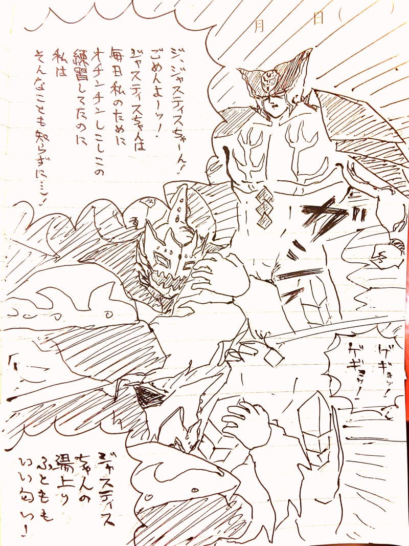 数週間前、久々に現世に実体化したのだが、『並の超人ばかりの街で大魔王を野放しにすると皆レイプされるのでは』 という懸念の声があり、結果、ジャスティスちゃんが定期的に私のオチンチンから精子をシコシコしてくれるようになった。しかしジャスティスちゃんはなんだか私のことがキライみたいで、いつもいつも不愛想にオチンチンシコシコして、ちんちんイタイイタイなのだった。