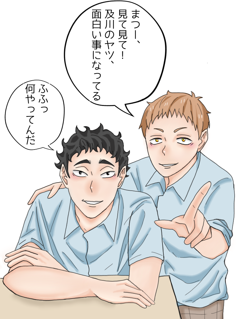saya_aoki☆quiet followDOODLE今日の絵も仲良しな松花🌿🌸いつもの如く夫婦喧嘩をしてる阿吽を見ながら仲睦まじく笑いあってる🌿🌸が可愛くて大好き😊 #ハイキュー highQueue #ハイキューファンアート hi-qFanArt #ハイキューイラスト hi-qIllustration #松川一静 kazushigeMatsukawa #花巻貴大 takedaHanamaki #松花 pineBlossom Tap to full screen (size:768x1024).Repost is prohibited Let's send reactions! freqpopularsnackothersPayment processing Replies from the creator Follow creator you care about!☆quiet follow saya_aokiDOODLE松花いろいろ 24 saya_aokiDOODLETwitterとかにあげたのをまとめました😊 7 saya_aokiDOODLE今日の絵も仲良しな松花🌿🌸いつもの如く夫婦喧嘩をしてる阿吽を見ながら仲睦まじく笑いあってる🌿🌸が可愛くて大好き😊 saya_aokiDOODLEちょっとだけエチな感じ saya_aokiDOODLE着替えをしてるだけでエロいだ、18禁だと言われちゃうまっつん🌿意外と気にしてたりしてて、ちょっと可哀想なんだけど、もうそれはモテ要素だと思って存分に発揮してくれ😊と私は思う😆✌️ saya_aokiDOODLE及川さん、お誕生日おめでとう🎂🎉 related works saya_aokiDOODLE saya_aokiDOODLE夏ですが冬場の絵ですね😅💦このあと、まっつん🌿はクシャミをするのですが『へっぶっし』って可愛いし、花ちゃんの『おっだいじにどぉーぞ』の言い方も可愛くて好き❤松花、最高に好き❤ saya_aokiDOODLE saya_aokiDONE北信介誕生祭2023お誕生日おめでとう、北さん🎂あんまり上手に描け無かったけど、お祝いとして🎂北さん、難しかったぁ😅💦※参考画像あり saya_aokiDOODLE松花いろいろ 24 saya_aokiDOODLE saya_aokiDOODLE saya_aokiDOODLE今日はまっつん🌿まっつんって後輩の女の子から絶対にモテると思うんだよねぇ😆包容力がありそうだし優しいそうだし憧れの先輩だよね😍花ちゃん🌸がムキー💢ってなりそう🤣 saya_aokiDOODLE悪戯顔で笑う2人は最高に可愛くて大好きです😆2人って、ほんと、こうゆうの似合うなって思う😊これから何かやってやるって時の顔は、こっちもワクワクしちゃいます😆 recommended works ノウァPAST一年前ぐらい?に行ったハイキュー舞台の感想を上げ損ないまくってPCで永眠しそうだったので絵が大分変わった…ような気がする笑笑 ナズ△△△PAST数年前の。餌付けしてみたやつ。#ハイキュー akikaze@秋風ののかDOODLE汗掻き葦くんと目が合いたい ② 子DOODLE M82DOODLE #ハイキュー まむんぐるDOODLE猫の日って今日ですよね???(すっとぼけ) くろのののDONE澤村大地!!!!!!!!!!作業工程も #ハイキュー #澤村大地 5 揚げ玉DONE烏野一部メンバーにプリクラを撮ってもらった男子高校生はかわいいな… 6 やぶきDONE構図も何もないけど、初めて模写じゃない記念。