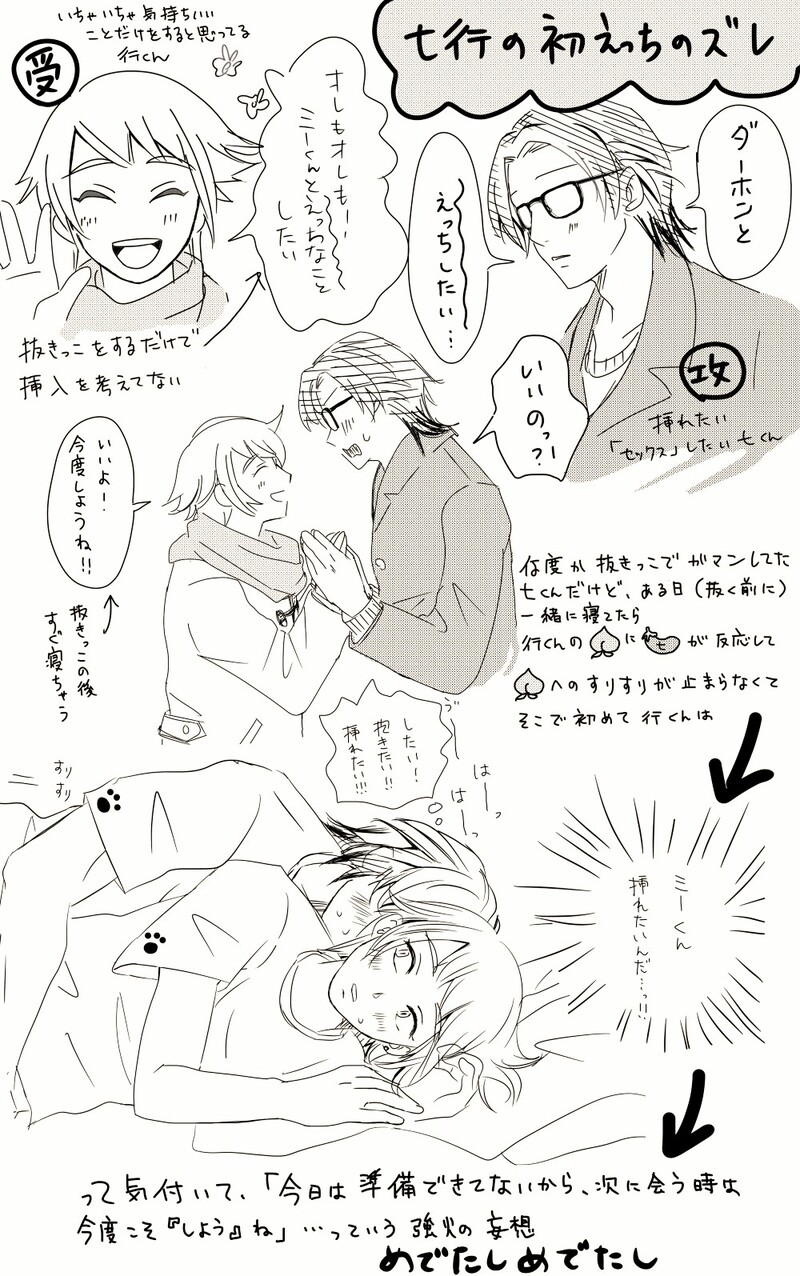 もろう☆quiet followDOODLE勢いで描いた強火妄想注意1兆個ある719物語のひとつということで一週間後に19くんと初えっちするってなったとき、7くん(17才)は溜めておく派か、2日前くらいに抜いておく派かって本気出して考えたんだけど、私は溜めておく派を推してる理由:19くんに「量多いね」って言ってほしいから Tap to full screen (size:1000x1595).Repost is prohibited Let's send reactions! freqpopularsnackothersPayment processing Replies from the creator Follow creator you care about!☆quiet follow もろうDOODLE今更ハロウィン&いいおしりの日719ふたりの尻を見せられて風くんが2重苦だな〜と思ってくれたらいい 2 もろうDOODLE719初ちゅーの強火妄想助走だけでちゅーに行き着いてないけど19くんが持ってるのは本じゃなくてDVDのパッケージ…19くんがいろいろ初めてなのは確定してるとして7くんがファーストキスかセカンド以降か(DTか非DTか)、どっちも萌える要素あるから迷う もろうDOODLE時間を置いたら二度と19くんの父は描けなくなりそうだからもう秋だけど釣りの続き7くんの良いところを改めて書き出すの難しい… 幸福度は別として、7くんは人の扱い方がわかってて敵をつくらずに生きるのがうまい人間だと思う もろうDOODLE719色塗りとらくがきいちゃいちゃ〜 3 もろうDOODLEヒライソガニの初期構想スチルは719でやっておかなきゃって強く思った、結局全裸になる19くんごめんコマ無しのらくがきのつもりだったからペンが太い もろうDOODLEずっと6&7コマ目を入れるネタがなくてここしかねぇ!って風くんに任せた ほんとは机でち◯こ押さえてる7くんにしたかったけど机と位置が合わなかった 2
