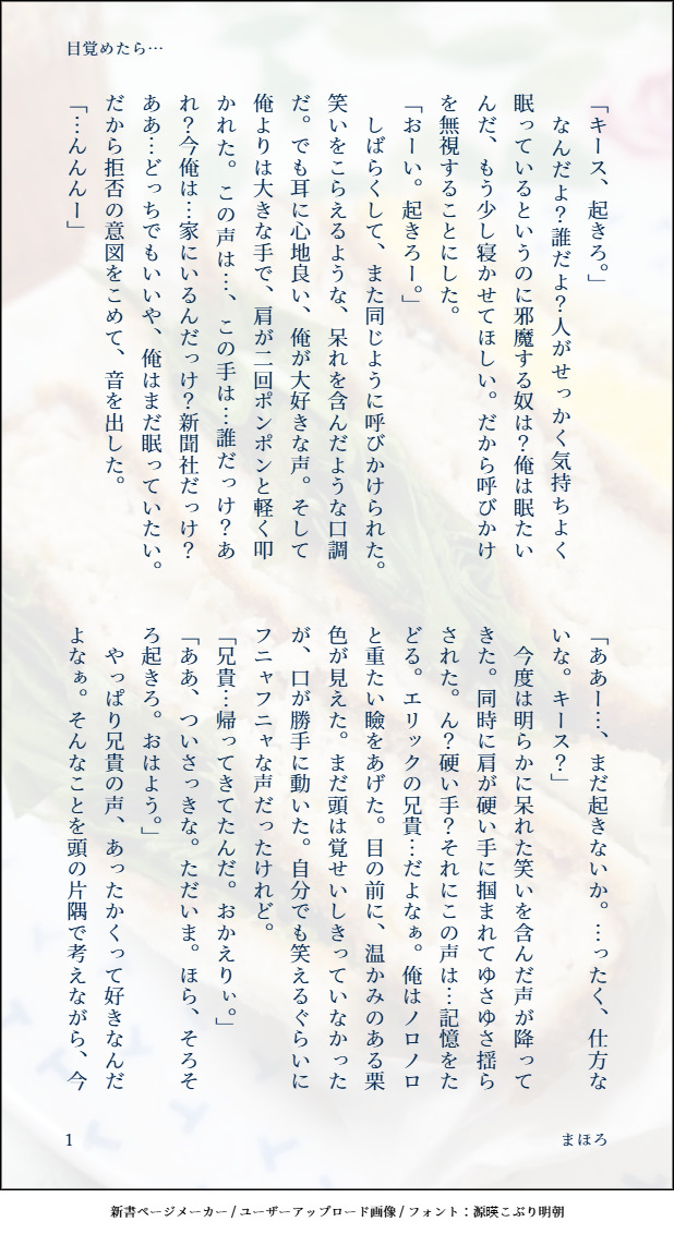 プラデスト潜入後のキース君誕生日から4,5か月後、春近いある日のギルクリスト家の居間での兄弟の会話です。
