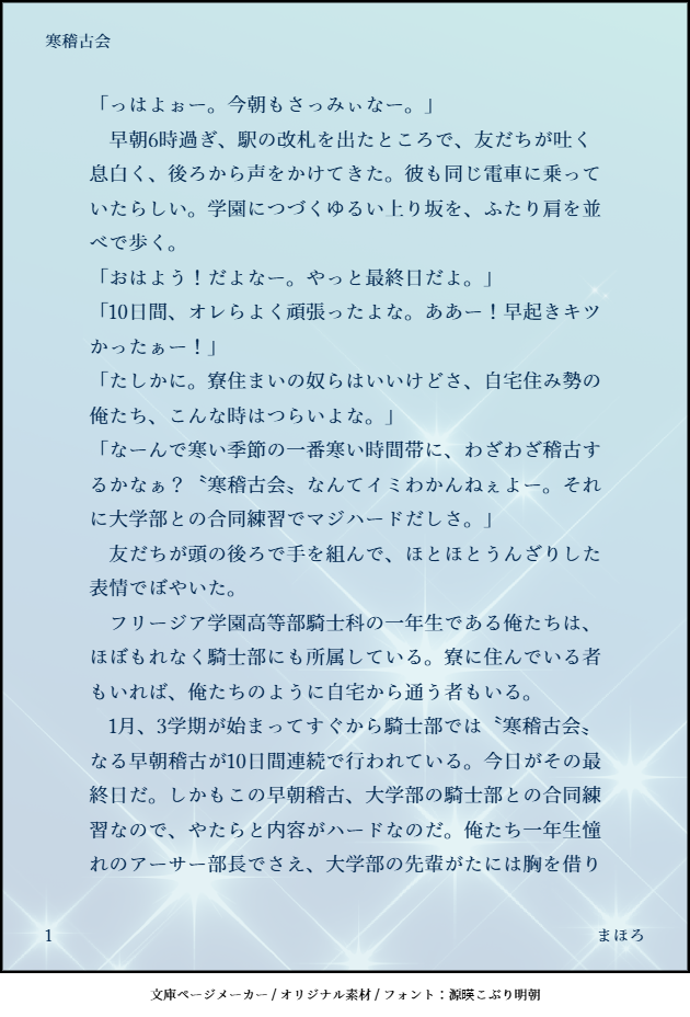 騎士部に寒稽古があったらいいなぁ…の妄想話。