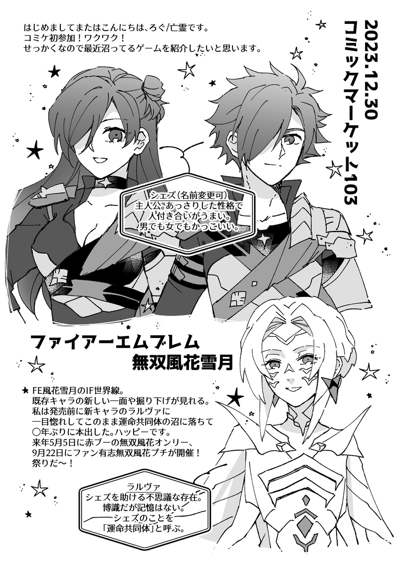 亡霊🐰☆quiet followDOODLEWaveboxのメッセージは下記のリンクにて返信しました!大変お待たせして申し訳ございません…!https://szrr.blog.2nt.com/blog-entry-35.html送信者限定公開できるメッセージはwavebox内で返信しましたあと冬コミのペーパーあげるの忘れたでも小学生レベルの紹介文見せるのは恥ずかしいな…うぅ… Tap to full screen (size:1752x2480).Repost is prohibited Let's send reactions! freqpopularsnackothersPayment processing Replies from the creator Follow creator you care about!☆quiet follow 亡霊🐰INFO運命共同体の絵、とりあえずpixivにあげていた分をサイトにまとめた〜!https://ghosthouselog34.weebly.com/few3h.html近頃pixivのほうは非公開にします。(完売した本のサンプルは先に非公開にしました)今後は在庫がある頒布物のサンプルだけpixivに残ります。よろしくお願い致します🙇 亡霊🐰INFO【サークル参加します!!】01月12日(大阪)SUPER COMIC CITY 関西30内 超刻印の誇り 2025冬 シェズラルで申し込んだ〜新刊出せるか危ういけど(出したい) 亡霊🐰INFO9月のラルシェズ♀新刊、通販はじめました。よろしくお願い致します。また、今回からBOOSTはご遠慮頂きますようお願い致します。https://p5log.booth.pm/items/6203549そして個人サイトも作ってみました。別ジャンルも含めた雑多サイトだと思ってください。まだ何もないです〜https://ghosthouselog34.weebly.com 亡霊🐰DOODLE本日はお立ち寄り頂きありがとうございました!差し入れ絵はフライングハロウィン次の予定は1月のインテを検討してるけど新刊出せそうにないのですごい悩む新刊ですが、来週から旅行や帰省で留守の日が多くてしばらく通販対応できませんので通販は10月下旬の予定になります 亡霊🐰INFO今日はよろしくお願いします!新刊の装丁めちゃくちゃ良い! 3 亡霊🐰DOODLE出せたらいいなの現パロシェズラル明日イベントよろしくお願いします!この前ポイピクにバグあった?みたいだけど今はもう大丈夫かなここが動かなくなったらたぶんXのほうにいるてかどこに行っても穏やかじゃないなSNSは recommended works 360maruiDOODLEワンドロ再録 お題:食育 お借りしました🙇♀️ 3 360maruiDOODLEワンドロ再録 お題:ぬいぐるみ お借りしました全然ニキマヨぽくなくてすみません…私はこうやってぬい持ち運んでます。。 360maruiDOODLEワンドロ再録 お題:手紙、メガネ お借りしました大正ロマンパロ大好きすぎて性癖をぶちこんでしまった…深窓の令息マヨと郵便屋さんニキくんのニキマヨ🥺 kazziottoINFO【再録】春の祭典アンソロジー、『刀の主題による小組曲』さま(illust/71714786、twitter@classical_tkrb)に参加させていただいた原稿に手を加えたりしたものです。。。アナログのすさまじいところがでてると思います。。。つけペンと修正液とマジックでできた原稿をフォトショップエレメンツ10でこねくりまわしたのと、液タブで描いた部分とのさまざまな差とかを感じてください…。 35 360maruiDOODLEワンドロ再録 お題:映画デート お借りしました。また意味不明なものを生み出してしまった… 2 sorairoskyblueDONE2021年12月12日 Dozen Rose Fes. 宇煉プチオンリー『輝石の焔』にて発行しました無配です。クリスマスにまつわる①ホラー軸の宇煉ちゃん②DK軸の宇煉ちゃん③よもやま軸の宇煉ちゃん④四十路軸宇煉ちゃんです。アンソロ等の感想も含めて、送っていただけると元気でます。マロ→https://marshmallow-qa.com/sorairoskyblue? 15036 ^_^PAST■【2021/07/24発行 ジャンル混合夢漫画本 再録】※二枚目注意書き必読絶対添い遂げない夢漫画もとい白勺場青争司(夏👁友人巾長)×(+?)オリキャラ女夢主の漫画です。(https://poipiku.com/2187571/7184365.html)を読んでから読むと分かりやすいと思います。 20 ^_^PAST■【2021/07/24発行 ジャンル混合夢漫画本 再録】※二枚目注意書き必読odskと名無し・顔あり夢主の漫画 odskは最初から死んでいます 12 💮toPAST22/01に発行したコピ本+無配のWEB再録となります。レオンさん視点で難産&ほぼ突発本なのでだいぶ駆け足気味な内容ですが、個人的にお気にな一冊です。お手に取って下さった方々、ありがとうございました! 25