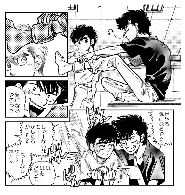 七奈(一歩)☆quiet followTRAINING一歩と千堂今53巻。ここまでくると一歩も大分強くなってきたので、鷹村さんや会長にたてつくようになった。成長したなぁと思う反面ちょっと寂しい。夏合宿で荷物番してたころが最早懐かしい。あと、島袋戦で一番頑張ったのはレフェリーの人でしょ。あの中に割って入るのは相当根性がいるぞ。 Tap to full screen (size:717x756).Repost is prohibited 七奈(一歩)TRAINING絵文字送っていただいてありがとうございました。ここらで引っ込めます。基本一人で妄想して一人で描き散らかす人間なので、メッセージを通して他者の意見や好きポイントを知る事はすごく新鮮でした。「なにわ拳闘会」を略して「なに拳」と呼ぶのだと知った時は落語研究会を略して「おちけん」て言うのに似てるなぁと思ったり。あ、あと私の他にキースが好きだという方もいて嬉しかったです。どうもありがとうございました! 七奈(一歩)TRAININGはじめの一歩を読んで驚いた事その② けっこうコピーが多い40巻あたりまで気付かなかった。素人目には分からないというか流石熟練のなせる業と言うか(別に同じ顔が多いとか描き分けが少ないとか言ってるわけじゃなくてゴニョニョ…)コピーと言えば、ダウン時のグニャアってなってる絵が実はコピーする瞬間に動かしながら写したものっていう、言われれば分かるけど発想が凄いなと思った。 七奈(一歩)TRAININGアナウンサーの人毎回大変。ところでラウンドガールが出てこないのは何故(メキシコ編の軽量で後ろにチラっといたかな)栗田を描いたのでチラっと語るが、伊賀栗コンビはあれで終わりなんだろうか。伊賀が「俺はあんたのロボットじゃない」みたいな展開というか、あだち充のH2に出てくる栄京学園高校のような内部から崩壊していく展開をすごく期待している。別に伊賀を応援してるわけじゃなくて青木に花を持たせてやりたい 七奈(一歩)TRAINING主(ヌシ)115巻で登場して以降未だに謎な主。この人一体何なんだろう。元トレーナー?元医者?もしかして鷹村にしか見えてないイマジナリーフレンド?(もしも鷹村がボクサーにならなかった果ての姿とか…いやいやいや無い無い)とか色々想像してみる。ここまで謎だとむしろ謎でも何でも無い気もしてきた。つまりただの友達。木村が「あの男友達なんていたのか」って冷静に反応してたのが好き。 七奈(一歩)TRAINING柳岡さん大阪人から言わせると「もう寝るよ!」は「寝るから静かにしろ」の意味。それはそうと柳岡さんの一人称を確かめるために85巻読み直したけど、この巻楽しすぎるやろ。どつくリスト作って沢村のバイク壊して宮田とスパーして宮田父の飲んだくれ話聞いて一歩の家泊まって鷹村が下痢になって。目白押し。柳岡さんは宮田父と話してる時は「私」だけどあれはよそ行きの顔なので普段はおそらく「ワイ」(多分…) 七奈(一歩)TRAININGリカルドがカレーうどんを食べる話「危険をはらんだ瞬間だった」を描きたかっただけ。リカルドって超人なのにめっちゃ人間くさい事で悩んでる。だって人間だもの。この人でも機嫌がイイときは鼻歌でも歌うんだろうか、と描きながら思った。 2 recommended works akasickumiPAST #狛恋 「粉雪」立場逆転シリーズ狛恋編 柱狛治と上弦恋雪の話❄️10P。 12 JuEROEROkiDOODLE【bakgian】喜欢的那个小动作 _dahanDOODLEthis is the jc/pm compilation. 2 toya_trpgSPOILERごだるか 未通過×とやハヤ別所での会話ログスクショいつきさん宛てXのログなので下から上に読む感じです。 6 ttugbaegi47DOODLE릴리감🔞서큐버스 감생이 호되게 당함⚠️여감독생 얼굴있음⚠️ㅇㅎㄱㅇ 하트신음 효과음 대충과격한?에로판타지비번은 동일, 메인트 맘찍하심 드려여 2 チヂミ飴DOODLE(DSエラーくんできゅうくらりんできちゃう) NDPFDOODLE我都沒得說了 nya_0820DOODLE岡山アルジュナさんと中国フェスジュナオさん、衣装が少し似てる気がするので(そうか?)、それぞれで選んでだのが偶然似てて、やっぱり根底は似てるのかもしれませんねとかいう会話をしていただいてたらわしが助かる。(妄想である) agua_con_hieloDOODLEgijinka 20