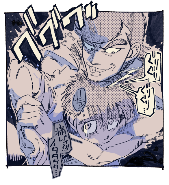 七奈(一歩)☆quiet followTRAININGチョークスリーパー(もどき)試合で負傷していく一歩を見てるとドキドキするのはどうしてだろう。真田戦でインターバル中に立ち上がれなくて会長に「立てません」って無言で首振ってるとこ一番好き。あとララパルーザの「パンチに潰される」ってとこ。 Tap to full screen (size:585x639).Repost is prohibited 七奈(一歩)TRAINING絵文字送っていただいてありがとうございました。ここらで引っ込めます。基本一人で妄想して一人で描き散らかす人間なので、メッセージを通して他者の意見や好きポイントを知る事はすごく新鮮でした。「なにわ拳闘会」を略して「なに拳」と呼ぶのだと知った時は落語研究会を略して「おちけん」て言うのに似てるなぁと思ったり。あ、あと私の他にキースが好きだという方もいて嬉しかったです。どうもありがとうございました! 七奈(一歩)TRAININGはじめの一歩を読んで驚いた事その② けっこうコピーが多い40巻あたりまで気付かなかった。素人目には分からないというか流石熟練のなせる業と言うか(別に同じ顔が多いとか描き分けが少ないとか言ってるわけじゃなくてゴニョニョ…)コピーと言えば、ダウン時のグニャアってなってる絵が実はコピーする瞬間に動かしながら写したものっていう、言われれば分かるけど発想が凄いなと思った。 七奈(一歩)TRAININGアナウンサーの人毎回大変。ところでラウンドガールが出てこないのは何故(メキシコ編の軽量で後ろにチラっといたかな)栗田を描いたのでチラっと語るが、伊賀栗コンビはあれで終わりなんだろうか。伊賀が「俺はあんたのロボットじゃない」みたいな展開というか、あだち充のH2に出てくる栄京学園高校のような内部から崩壊していく展開をすごく期待している。別に伊賀を応援してるわけじゃなくて青木に花を持たせてやりたい 七奈(一歩)TRAINING主(ヌシ)115巻で登場して以降未だに謎な主。この人一体何なんだろう。元トレーナー?元医者?もしかして鷹村にしか見えてないイマジナリーフレンド?(もしも鷹村がボクサーにならなかった果ての姿とか…いやいやいや無い無い)とか色々想像してみる。ここまで謎だとむしろ謎でも何でも無い気もしてきた。つまりただの友達。木村が「あの男友達なんていたのか」って冷静に反応してたのが好き。 七奈(一歩)TRAINING柳岡さん大阪人から言わせると「もう寝るよ!」は「寝るから静かにしろ」の意味。それはそうと柳岡さんの一人称を確かめるために85巻読み直したけど、この巻楽しすぎるやろ。どつくリスト作って沢村のバイク壊して宮田とスパーして宮田父の飲んだくれ話聞いて一歩の家泊まって鷹村が下痢になって。目白押し。柳岡さんは宮田父と話してる時は「私」だけどあれはよそ行きの顔なので普段はおそらく「ワイ」(多分…) 七奈(一歩)TRAININGリカルドがカレーうどんを食べる話「危険をはらんだ瞬間だった」を描きたかっただけ。リカルドって超人なのにめっちゃ人間くさい事で悩んでる。だって人間だもの。この人でも機嫌がイイときは鼻歌でも歌うんだろうか、と描きながら思った。 2