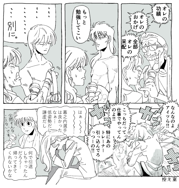 栗田を描いたのでチラっと語るが、伊賀栗コンビはあれで終わりなんだろうか。伊賀が「俺はあんたのロボットじゃない」みたいな展開というか、あだち充のH2に出てくる栄京学園高校のような内部から崩壊していく展開をすごく期待している。別に伊賀を応援してるわけじゃなくて青木に花を持たせてやりたい