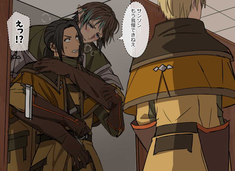 sue☆quiet followDOODLE余裕ない攻好きすぎるので、なんか…いろいろあって媚薬飲んじゃって、なんやかんやあって閉じ込められて職場で我慢できなくなるギドゥロ見たい #ギドサン guidosan Tap to full screen (size:1000x728).Repost is prohibited Let's send reactions! freqpopularsnackothersPayment processing Replies from the creator Follow creator you care about!☆quiet follow suePROGRESSこれ私の原稿あるあるなんですが……背景描きすぎて、まだトーン貼ってないのにこの黒さって言うね。少年漫画かな? suePROGRESSキャラだけ終わった~~~あとはトーンと背景と背景と背景と…効果音とか吹き出しとかかかかか眠すぎてギドゥロの首から毛はえてた suePROGRESS一生「デッサンが分からない…デッサンが分からない…」って言ってた原稿ラフ suePROGRESS終わんねーな、終わんねーよ(桃城)今回イベント期間(4日・5日)の予約数を見て印刷するので…多分皆さんのお手元に届くの10月3週(中旬)くらいになるかなと。そこらへんは都度SNSで発信します。委託はいつもの虎さん。 suePROGRESSキャラのペン入れ、あと7ページ…背景・トーン・セリフ調整・効果音諸々残ってるけど、キャラ描ければなんとかなる…ただ残りの7ページ全部絡みのシーンだから虚無のゲンドウポーズしてる sueDOODLE※モブレなのでお気をつけを!ヌルにつかまったとき、ヌルの部下から拷問(と言う名の凌辱)されてそう感あったんで。描いてる私はとても楽しかった。 related works エリユキDOODLEエレゼンのチソコはミドランに入るんだろうか…>< エリユキDOODLEエレミドの身長差がタマランという話 エリユキDOODLE⚠️暁月ネタバレ⚠️正直期待はしてた!!!してたけどせいぜい背景にひっそり映りこむ程度の登場だと思ってたーーーー!!!!ありがとう暁月のフィナーレ。゚(゚´ω`゚)゚。。゚(゚´ω`゚)゚。そしてよかったね隊長~~~。゚(゚´ω`゚)゚。。゚(゚´ω`゚)゚。。゚(゚´ω`゚)゚。 エリユキDONEなんとか自分絵に落とし込もうと四苦八苦した形跡が垣間見えるギドサン。(でも似ない)(つらい)詩人クエはいいぞ!!!!!!! 3 sueDOODLEヌールヴァルからサンソンを助け出した後2人で帰っていったけど、どうせグリダニアに戻る最中に我慢出来なくてなんかやってるっしょ。って思ってクエストやってた エリユキDOODLE詩人クエカンスト後に手探りで描いた絵 3 エリユキDOODLE森育ちのサンソン、大木から元気もらいがちギドゥロからは森の匂いもしそうだし、すぐ側に森を感じられる存在がいて良かったネ☺️ 2 エリユキDONEなんとなくカプ観が固まってきたので作りました。ギドゥロはキスが上手いしエッチも上手いこれだけは譲れねえ!!!!!!! エリユキDONE「イケメンは顔が前戯」というパワーワードから導き出されたギドサン(初夜)。相変わらずたいしたことやってませんが一応背後注意です! 5