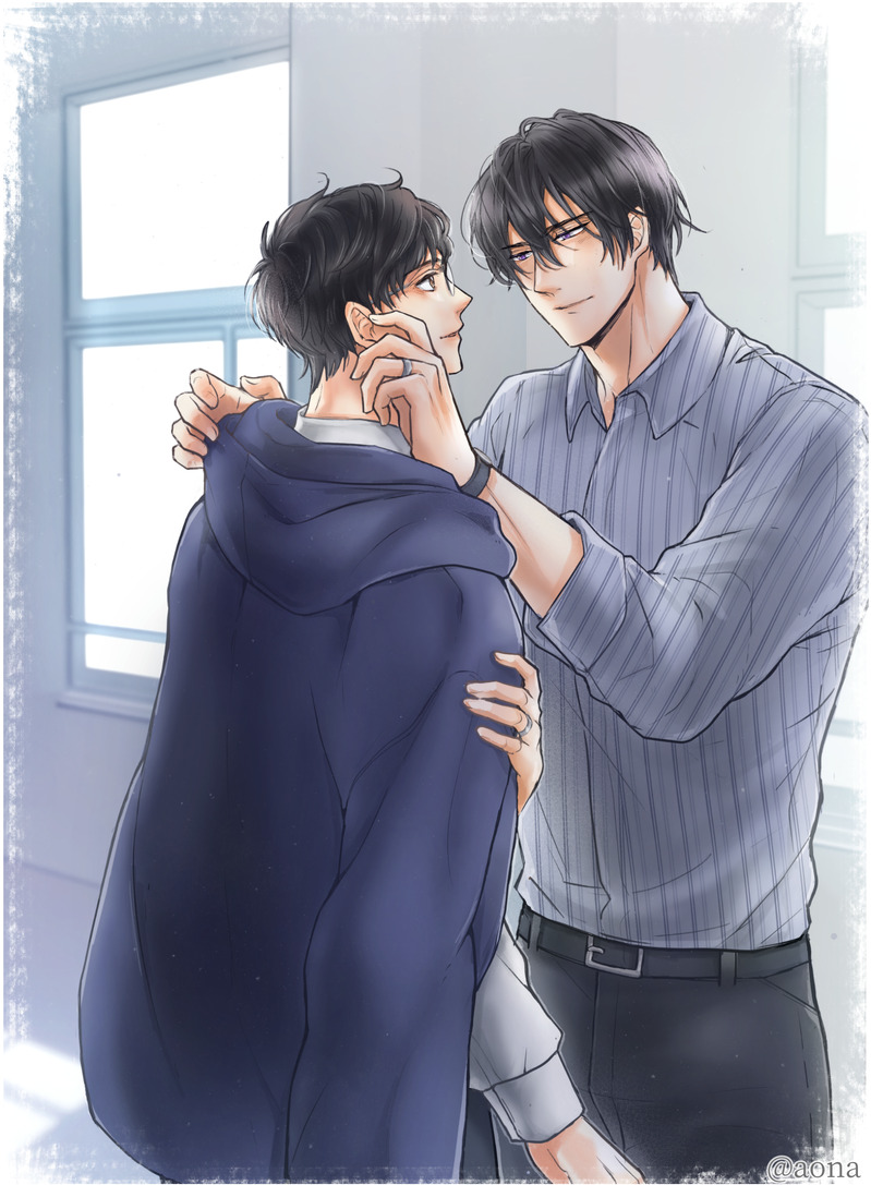 らんさんのプリズムシリーズの8作目(https://www.pixiv.net/novel/show.php?id=22632627)より。イメージイラストを描かせていただきました。教師と学生の関係から始まった2人がここまできたんですね😂✨