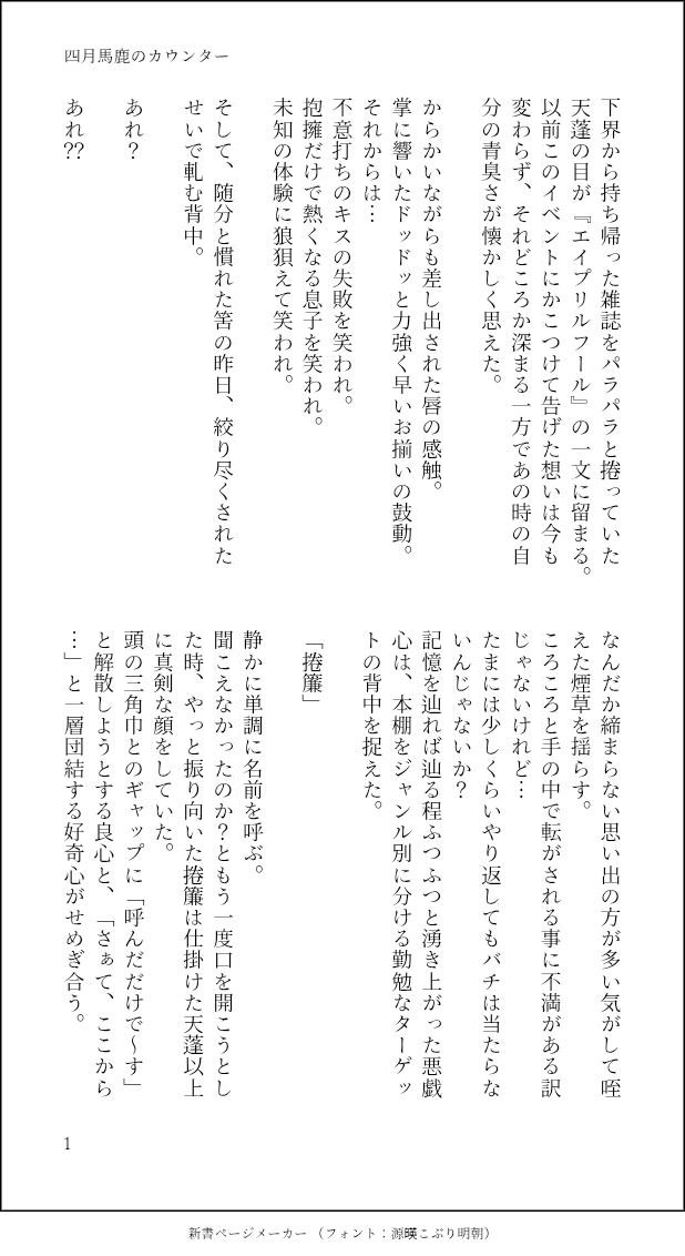 陸也🍺☆quiet followDONE四月馬鹿のカウンター / 天捲 show all(+2 images) Tap to full screen (size:618x1132).Repost is prohibited Let's send reactions! freqpopularsnackothersPayment processing Replies from the creator Follow creator you care about!☆quiet follow 陸也🍺DONE右往左往の波に乗る / 天捲の日まで4日 5 陸也🍺DONE落葉 / 天捲の日まで5日原作軸、下界にて 3 陸也🍺DONE箱庭と即席麺 / 天捲の日まで6日 4 陸也🍺DOODLEぼくとお兄さん / 天捲の日まで7 日現パロ / ※しょたおに 3 陸也🍺DONEもうひとつのルーティーン / 天捲の日まで8日タ◯レコ🎹🎷 2 陸也🍺DONEルーティーン / 天捲の日まで9日タ◯レコ🎹🎷 3 recommended works kimi2_3chiareDOODLEストグラ関連 10 kimi2_3chiareDOODLEさくちゃんと愉快な仲間たちFA 10 moyasi_SousakuDOODLEキッドとそういう生き物キラーさん~ちょっと藁を添えて~ 4 potPASTしんげきまとめ。リヴァハン多めパロ、捏造、年齢操作、ネタバレとかいろいろあります ご注意を 36 芙DOODLE滿18了嗎🫵(yes/no) 2 ヒナタマクイINFO世界のVtuber(バーチャルYoutuber)市場産業分析レポート、成長、機会、トップメーカー、サイズ、シェア、トレンド概要 - 2024-2036年予測2024年1月現在、世界には54億人以上のウェブクライアントが存在し、これは世界人口のほぼ67.1%に相当する。詳しい情報はこちら: https://shorturl.at/qYy41 nagiko_795DONEらんま/アニメカラーのシャンプーちゃん なりひさDOODLEしゃけのざ。現パロのコXダパロ。しゃけのざが別れて、👃👂になって、👃👂が別れたところ 3237 tsubaki06vgDONEおめでとうございました💜🖤加工なし差分も☺️ 2