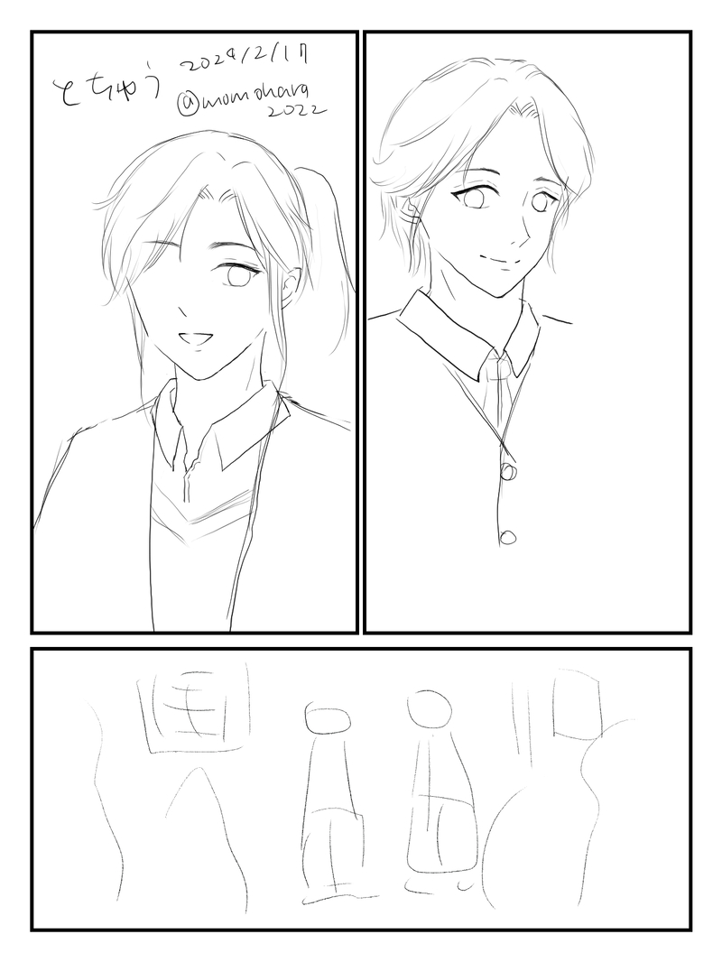 最初に描いたのが一番下のやつで、そこから1枚目の2人の顔が描けるようになるまで約9ヵ月かかってるよ。楽しい。