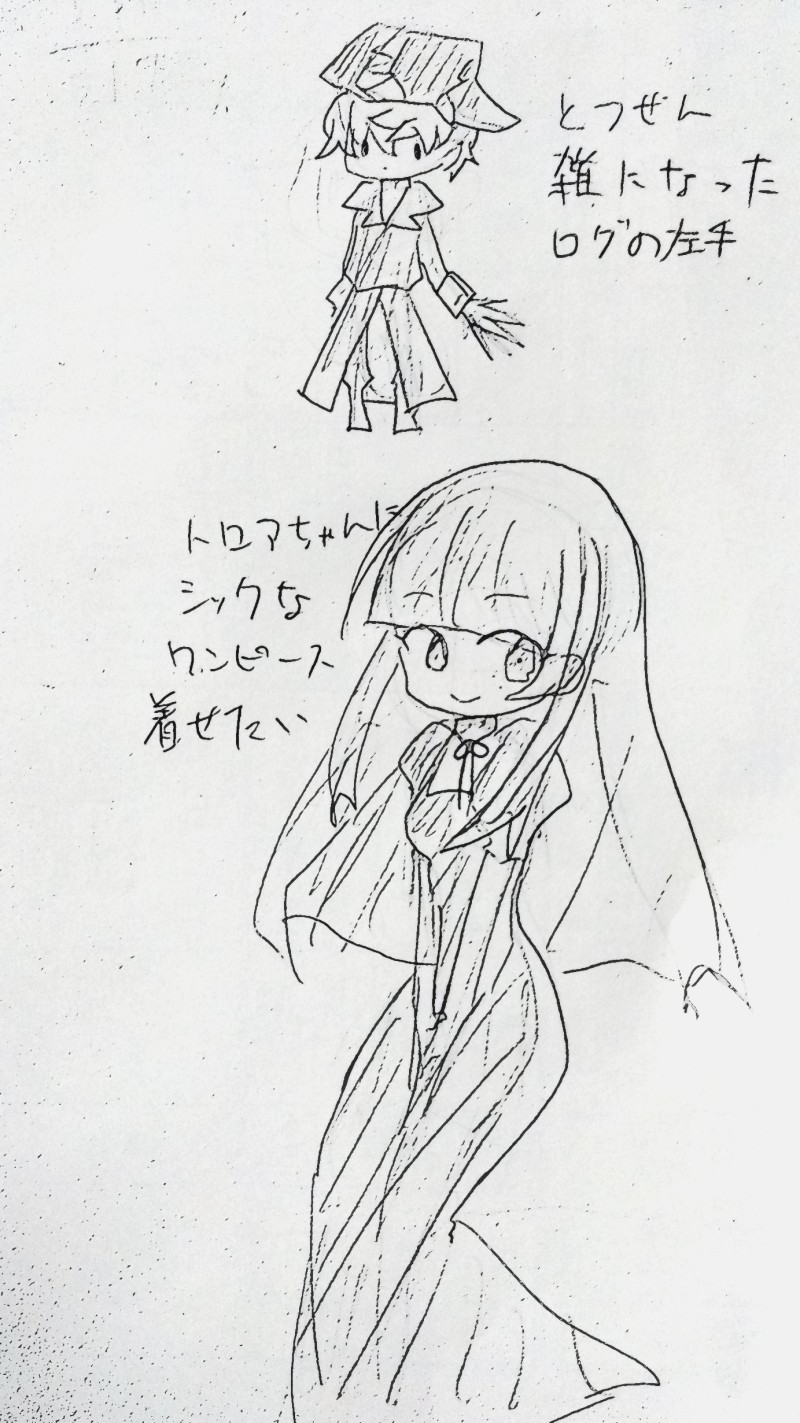 急に左手が雑になったログと、シックなワンピースを着てほしいと思ったトロアちゃん。