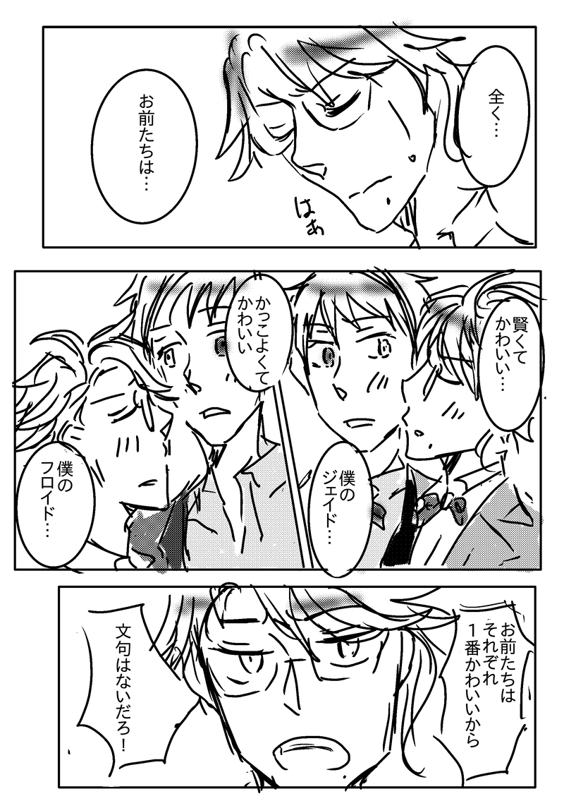 DOODLEアズくんのみ先天性女体化のイドアズ♀。寝る時は裸なアズくん(ジェとフロ相手には隠さない)と、隠さないアズくんに表面平静内心思春期真っ盛りなジェとフロの話。