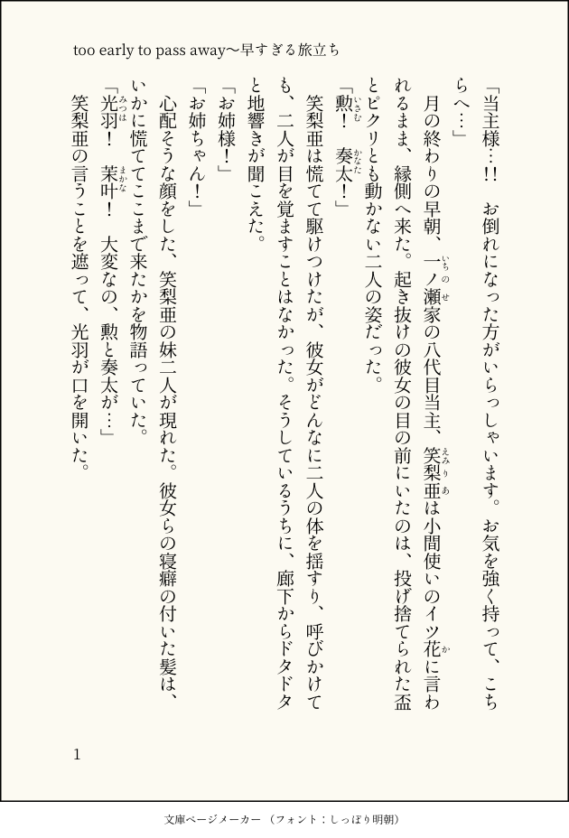 あずき☆quiet followCAN’T MAKE『too early to pass away〜早すぎる旅立ち』少し前に上げたSS『今宵、盃を交わして』の後日譚&前日のお話です show all(+5 images) Tap to full screen (size:630x928).Repost is prohibited Let's send reactions! freqpopularsnackothersPayment processing Replies from the creator Follow creator you care about!☆quiet follow あずきCAN’T MAKE㐅力"才─夕"亻ノレ予想した時のやつ あずきDOODLE⚠️擬えんがわちゃん(㐅力"ㇱン力)の仮デザインおまけのたうん化(ルッチャの面影は消えた) 3 あずきDONE⚠️一部トレス⚠️パロディメガルチャブルと、ずうっといっしょ! あずきDONEメガルチャブル2枚目は加工前 2 あずきDOODLE⚠️プレゼンツネタバレ⚠️ミリしら(公式による情報のみあり) あずきDONE企画 4 recommended works なっとうDOODLE今まで描いたことのある鬼滅キャラを描こうとねずこまで描いたけど、次に煉獄さんに手を出したら難しすぎて断念しましあ明日から頑張る フランキー蒲生DOODLE今週入ってようやく鬼滅の刃を観始めた。ネタバレも何も…早くストーリー見なきゃねー! ひよこ豆DOODLEスケブに描いたハロウィンverの甘露寺蜜璃ちゃん(*´`) 🍀と🌺DOODLE🌺鬼滅の刃より【禰豆子】 @twst4192stDONE冨岡さんはみんなに嫌われてないよ😊💓生まれてきてくれてありがとう🥰🌸✨✨#冨岡義勇生誕祭2020#冨岡義勇誕生祭2020 ミツサPASTあがつま!!! 4 夜長子ーよなこーDOODLE ChancoDOODLE無一郎 しばねこDONE閉じ込めカナヲちゃん