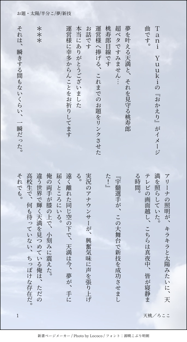 Lococo☆quiet followDONE🏅🍑ドロ『新技/夢/太陽/半分こ』🔥家の🔥柱の型から🤸♀️の技に繋がる💎と🔥の繋がりを🏅🍑に繋げてみました。名もない技→非公式の👹殺隊が表に出る事なかった、と繋げました。 show all(+11 images) Tap to full screen (size:618x1132).Repost is prohibited Let's send reactions! freqpopularsnackothersPayment processing Replies from the creator Follow creator you care about!☆quiet follow LococoDONE💎🏅です(お好きな方のみどうぞ)💋の日だいぶ遅刻です😓前回のダイキ先輩のお話のその後ですが読まなくても平気です🤣 6 LococoDONE💎🏅のお話・番外編😆ダイキ先輩が珍しく💎サンに褒められるお話🤸♀️大会を初めて観戦して思いついた超くだらないネタでスミマセン💦 6 LococoDONE💎🏅(DD💎&DC🏅)お好きな方のみどうぞ💖💎サンが📸マンになる前の、🏅キュンがようやく💎サンを意識しだしたお話。💎サンはずっと片思い中😂やっつけ感凄くてスミマセン💦 6 LococoDONE📸マン💎と🤸♀️🏅五輪その後のイチャイチャ…🏅キュンが頑張ってフェ🍌するけど…😂なお話くやまさん🎂おめでとう㊗️第二弾🎁です❣️ 9 LococoDONE📸マンになる前のDD💎サンと🤸♀️DC🏅の将来の約束。くやまさんお誕生日🎂おめでとう㊗️🎁遅くなりスミマセン💦 8 LococoDONEアラフォー天桃のオリンピックへの道😆五輪見てるとワクワクしますね💓 5
