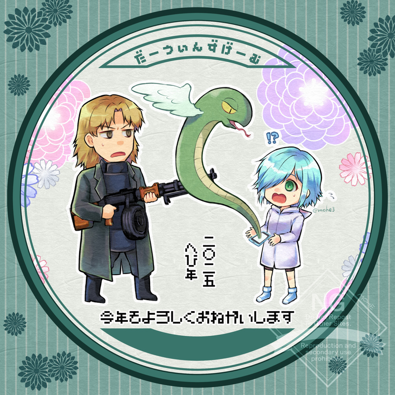 スイちゃんの振り袖は2年連続で描いたので今年は普段着にしましたが、飾り付けで何とか年賀らしくなりました