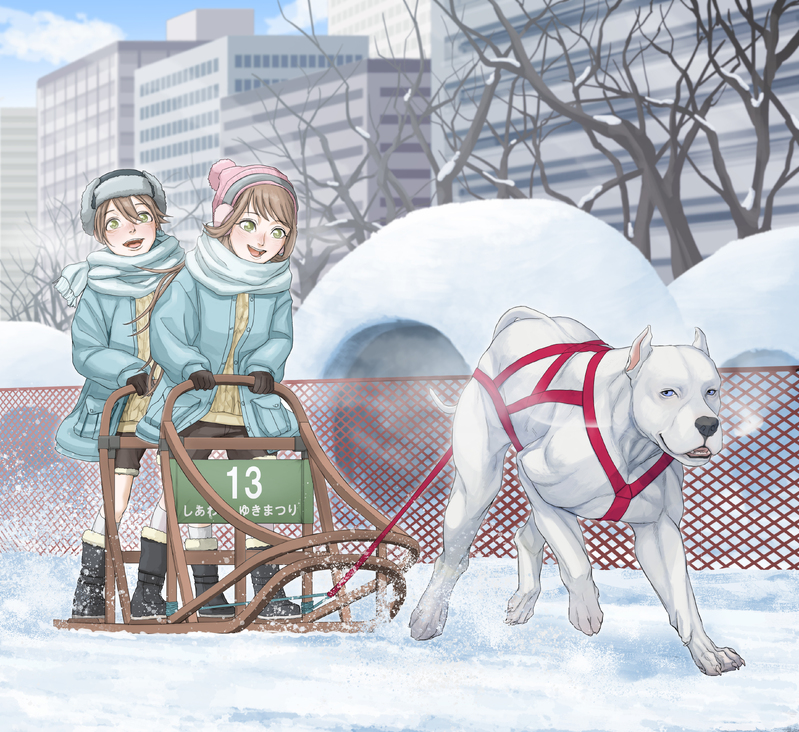 【しあわん】月島兄妹🌙(@ munagecham )と犬ぞりレース(高解像度版)