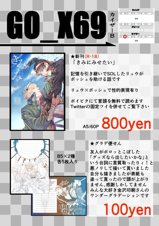 HAL☆quiet followINFO11/3に行われるブレスオブファイアオンリー、ドラグニールフェスでのお品書きです。当日は無配ペーパーもご用意しておりますので、お気軽にお立ち寄り下さいませ。 Tap to full screen (size:524x744).Repost is prohibited Let's send reactions! freqpopularsnackothersPayment processing Replies from the creator Follow creator you care about!☆quiet follow HALPROGRESS瑠璃女主漫画の進捗1枚目は線画で2枚目はネームです 2 HALDOODLE HALPROGRESSLOM瑠璃女主漫画の進捗から、いくつかカットをまとめました 11 HALDOODLEマジバケよりシャルドネ HALDOODLEFF4パロム、過去絵を手直ししました HALPROGRESSLOM瑠璃女主漫画の進捗、その中で気に入ってる絵をまとめました 7 recommended works HALDOODLE線画の方が気に入ってる 2 HALPASTまだコミスタで描いてた時のをいくつかと、ノートのラクガキ 5 HALDOODLEこの2人がとても好きです ヤミーCAN’T MAKE ヤミーDONE さDOODLE聖剣LOM ギルバート(リク絵) syari1_4DOODLEニーナたん… syari1_4DOODLEボッシュお気の毒になエリート様! mqube015DONE初代ドラゴンクエストが34歳らしいので!