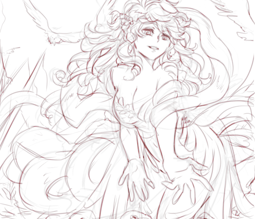 よく見たら色塗りデータが消し飛んでたので線画と完成しかない いくさ好きで息子を次々王にしていくしらかば神話の偉大なるお母さま。標準美からしたら怪物たちの母みたいな存在。豊穣と邪悪、肉欲の象徴。プリミティブ。この大地に生まれたものは母なる神の権能を脱することはできない。死に体の芸術家を拾って復活させるのが得意。
